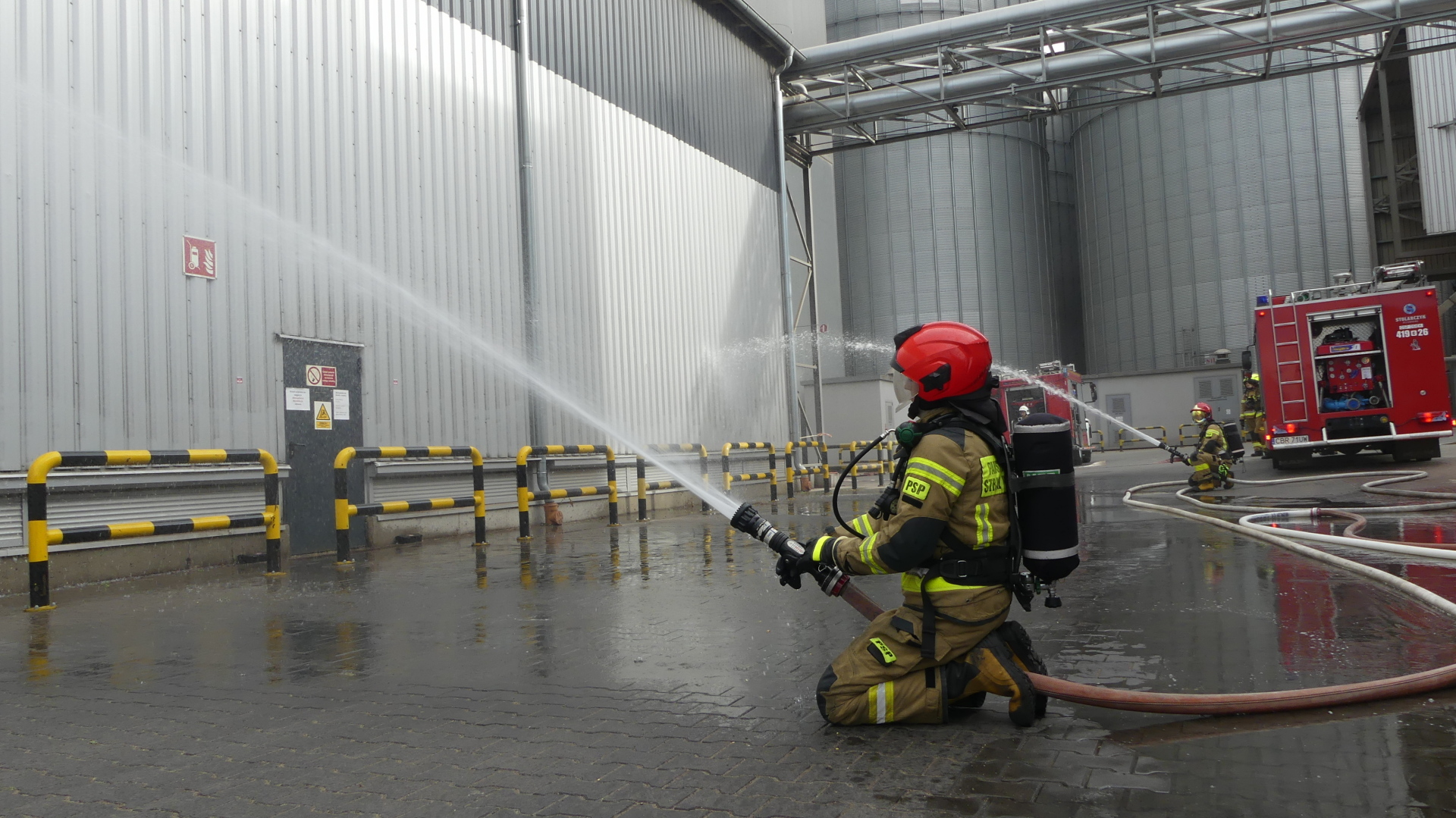 Ćwiczenia obserwowali Arkadiusz Orłowski Wicestarosta Brodnicki, st. kpt. Krzysztof Natucki Komendant Powiatowy PSP w Brodnicy, nadkom. Krzysztof Miłek Zastępca Komendanta Powiatowego Policji w Brodnicy, Tomasz Mrozowski Wiceprezes Zarządu Oddziału Powiatowego ZOSP RP oraz Kierownictwo zakładu. Ćwiczenia zakończyła zbiórka podsumowująca, na której Komendant Powiatowy PSP w Brodnicy oraz Funkcjonariusze Komendy Wojewódzkiej PSP w Toruniu omówili realizowane założenia.