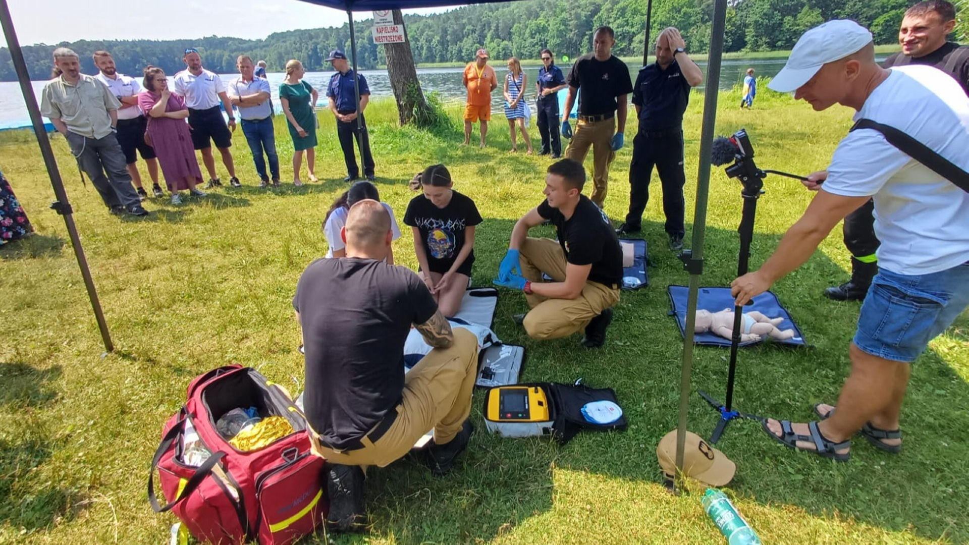 Punktem kulminacyjnym spotkania był pokaz ratownictwa wodnego, w którym współdziałający funkcjonariusze Policji oraz Państwowej Straży Pożarnej podjęli tonącą osobę z jeziora Bachotek a następnie udzielili jej kwalifikowanej pierwszej pomocy.