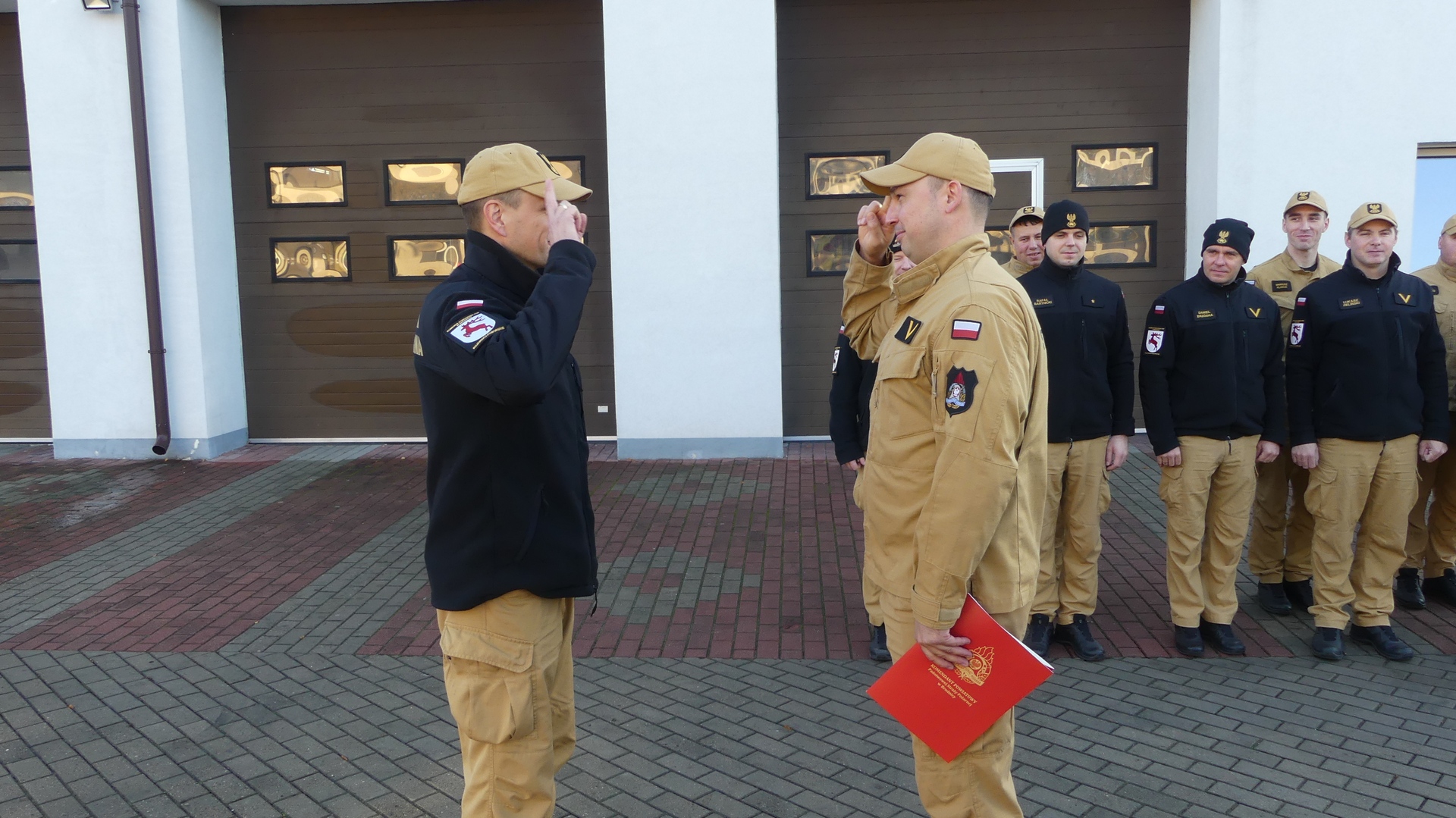 4 listopada 2024 r. na terenie Komendy Powiatowej PSP w Brodnicy odbyło się uroczyste wręczenie narody jubileuszowej za 20 lat pracy i służby.