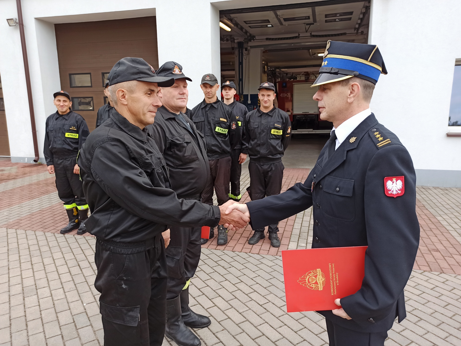 14 września 2022 r. st.bryg. Andrzej Górecki Komendant Powiatowy PSP uroczyście, na zmianie służby wręczył nagrody jubileuszowe z okazji 30 lat służby i pracy: