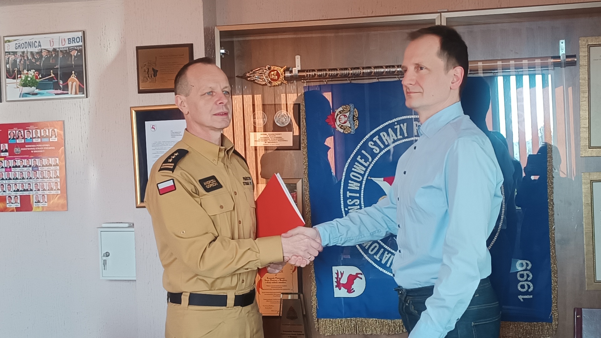 13 kwietnia 2023 r. jubileusz 20-lecia pracy obchodził mgr inż. Marcin Jabłoński – z tej okazji Komendant Powiatowy PSP w Brodnicy st. bryg. Andrzej Górecki wręczył mu nagrodę jubileuszową i złożył serdeczne podziękowania za nienaganną pracę.