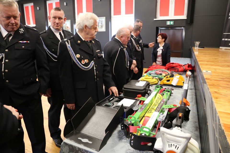 16 stycznia br., podczas uroczystego przekazania sprzętu obecni byli: Sekretarz Stanu w MRiRW Anna Gembicka, wicewojewoda kujawsko-pomorski Józef Ramlau, Michał Żmijewski reprezentujący posła Mariusza Kałużnego, radny wojewódzki Marek Hildebrandt, zastępca komendanta powiatowego PSP w Brodnicy st. kpt. Krzysztof Natucki, burmistrz miasta i gminy Jabłonowo Pom. Przemysław Górski, przewodniczący rady Zbigniew Mikulicz oraz radni. Ochotnicy otrzymali kamerę termowizyjną, podpory stabilizacyjne, zestaw poduszek pneumatycznych, podkrzesywarkę spalinową oraz ubranie do pracy w wodzie. Całkowita wartość pozyskanego sprzętu to 38 tyś. zł.