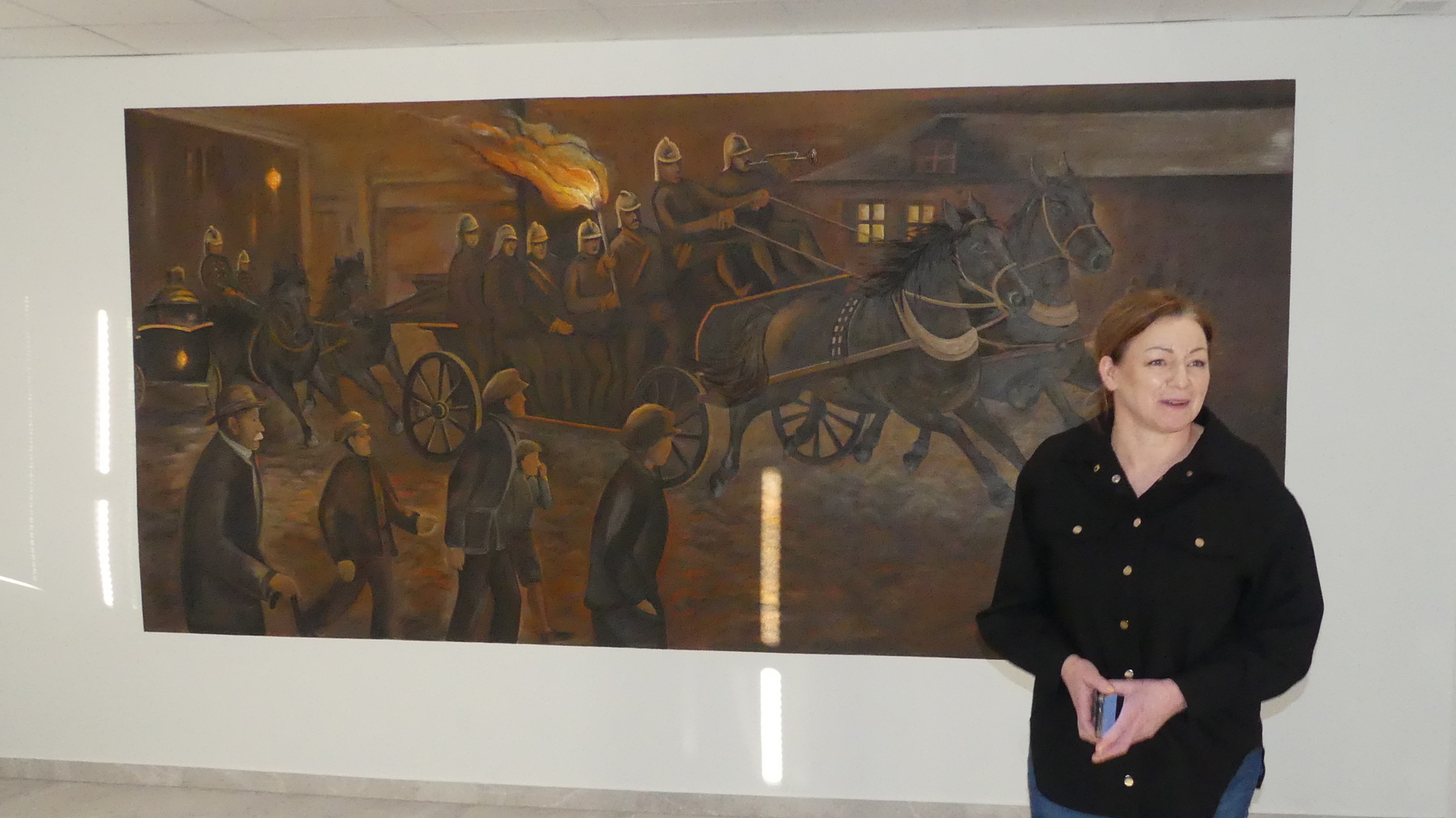 Od lat słyszeliśmy, że za panelami ściennymi na sali szkoleniowej Jednostki Ratowniczo Gaśniczej w Brodnicy znajduje się pewna perełka – obraz. W kronikach ustaliliśmy, że w latach 80 dzieło na ścianie w namalował pan Edmund Czerwiński, wzorem do jego powstania była praca „Do pożaru” autorstwa Czesława Wasilewskiego.