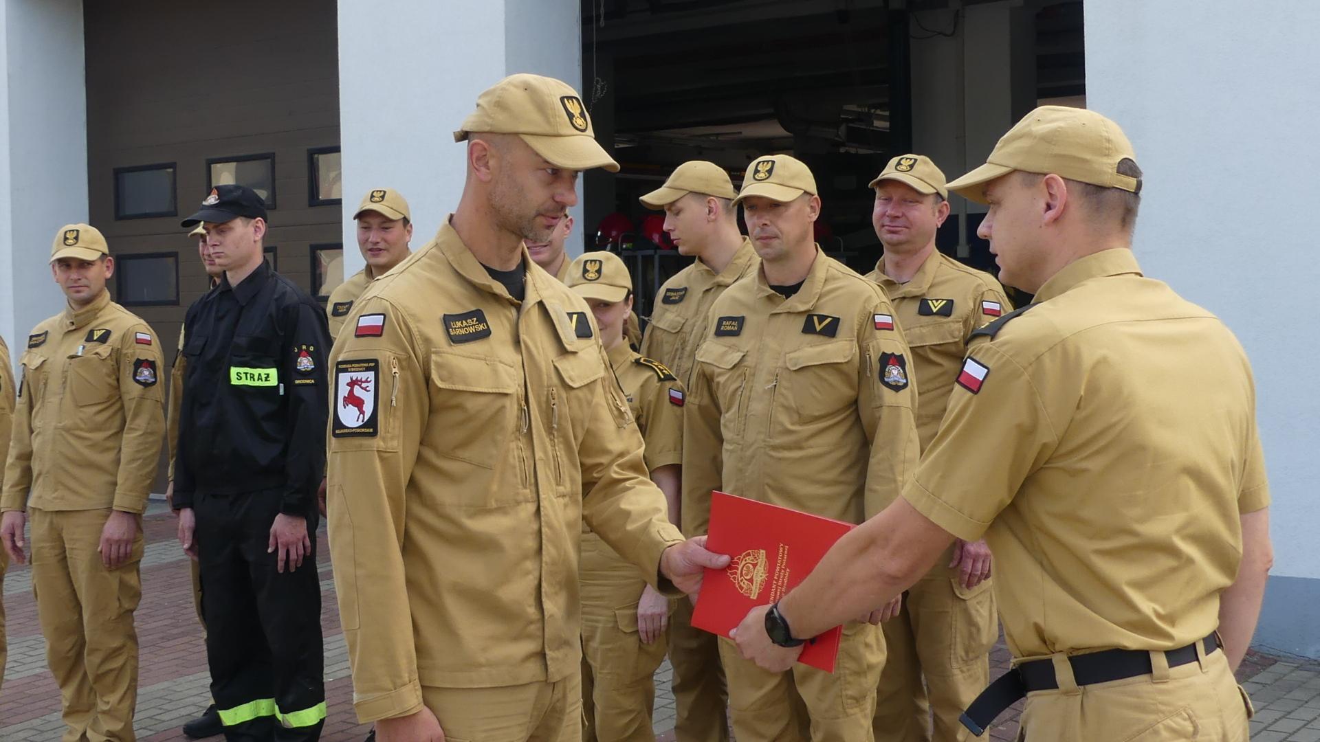 9 lipca 2024 roku na terenie Komendy Powiatowej PSP w Brodnicy odbyło się uroczyste wręczenie nagrody jubileuszowej za 25 lat pracy i służby. Podczas zmiany służby st. kpt. Krzysztof Natucki Komendant Powiatowy PSP w Brodnicy wręczył ogn. Łukaszowi Sarnowskiemu list gratulacyjny wraz informacją o przyznaniu nagrody z okazji jubileuszu pracy zawodowej.