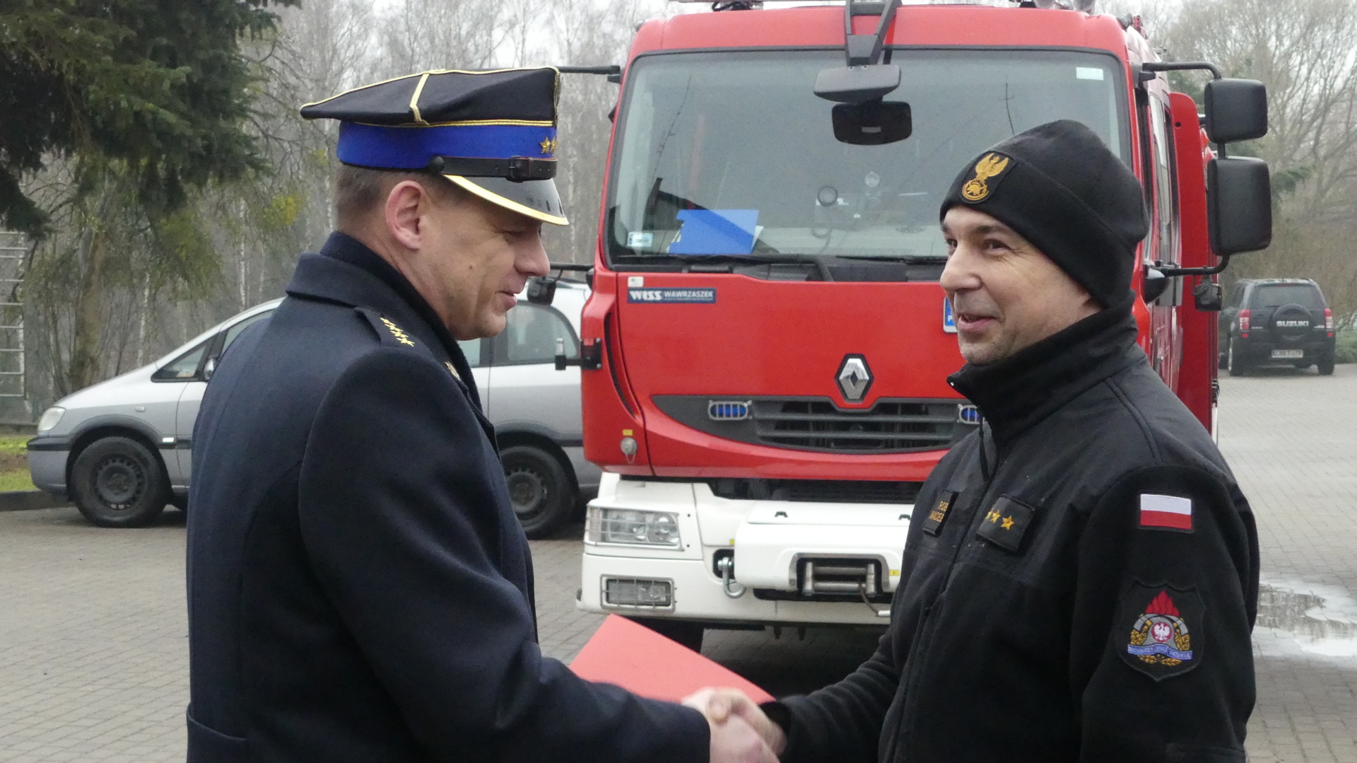 Pełniący obowiązki komendant powiatowy PSP st. kpt. Krzysztof Natucki i zastępca dowódcy JRG st. kpt. Robert Czarnecki podziękowali funkcjonariuszowi, we własnym imieniu, ale także w imieniu całej kadry Komendy Powiatowej PSP, za ponad trzydziestoletnią służbę na rzecz ochrony przeciwpożarowej.