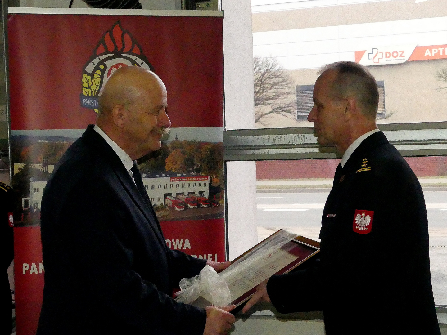 Ustępujący komendant podziękował wszystkim zebranym za współpracę, wsparcie i pomoc w trakcie pełnionej służby.