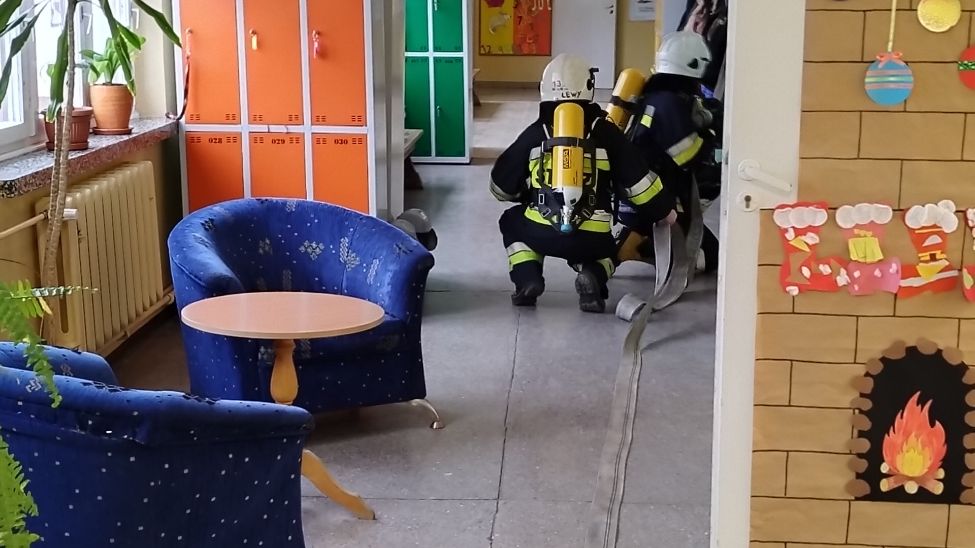 Około godziny 10.00 w Szkole Podstawowej w Płowężu wybrzmiał dzwonek alarmujący o zadymieniu budynku oraz konieczności natychmiastowej ewakuacji. Jak się później okazało był to wstęp do spotkania ze strażakami, podczas którego uczniowie oraz pracownicy szkoły mieli okazję przećwiczyć zasady ewakuacji oraz zobaczyć działania straży pożarnej podczas symulowanego pożaru budynku szkoły. W dalszej części, w ramach przedsięwzięcia „Szkoła przyjazna wodzie – AKTYWNI BŁEKITNI” uczniowie zostali zaznajomieni z podstawowymi zasadami bezpieczeństwa na zamarzniętych zbiornikach wodnych a także zagrożeniami związanymi z niskimi temperaturami oraz porą zimową. W związku z trwającym sezonem grzewczym poruszone zostały zagadnienia związane z prawidłową eksploatacją urządzeń grzewczych, omówiono zagrożenia związane z tlenkiem węgla oraz przedstawiono korzyści płynące z instalacji czujnika tlenku węgla.