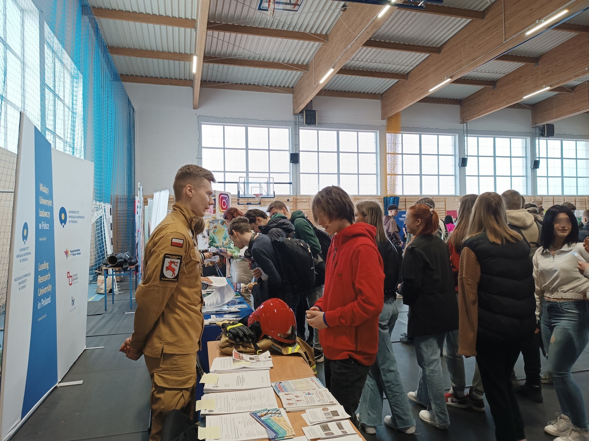13 kwietnia 2023 r. w hali sportowej Centrum Kształcenia Zawodowego i Ustawicznego w Brodnicy przy ul. Karbowskiej 29 odbyły się Targi Edukacji i Pracy pod hasłem „Zadbaj o swoją przyszłość”. Poszukujący zatrudnienia oraz nowych ścieżek edukacji i kariery zawodowej mieli okazję zapoznać się z ofertą Komendy Powiatowej Państwowej Straży Pożarnej w Brodnicy. Młodzież miała okazję przymierzyć umundurowanie oraz hełm strażacki. Przedstawicielami tut. Komendy byli st.asp. Małgorzata Kur i mł.asp. Kajetan Orłowski.