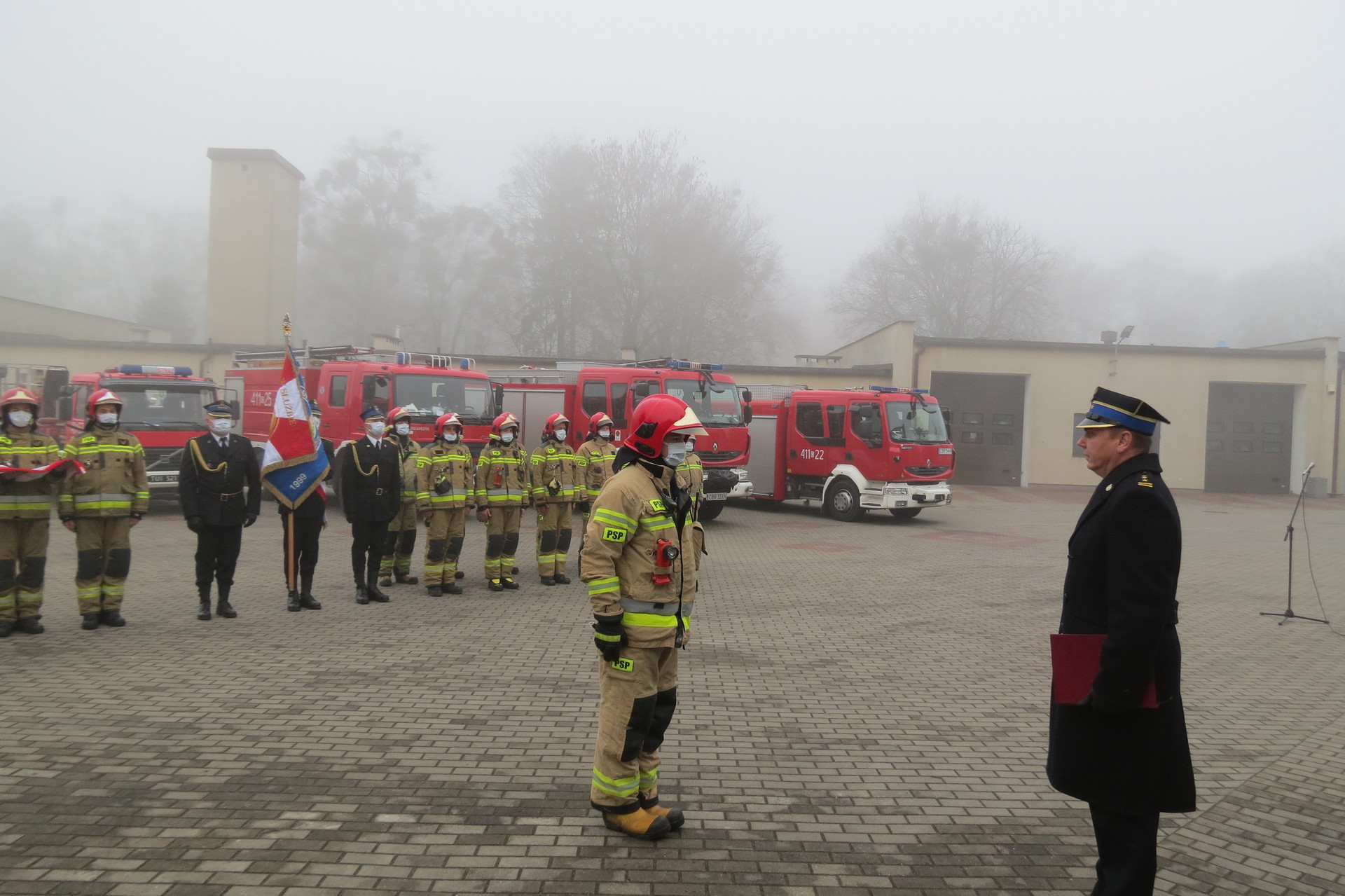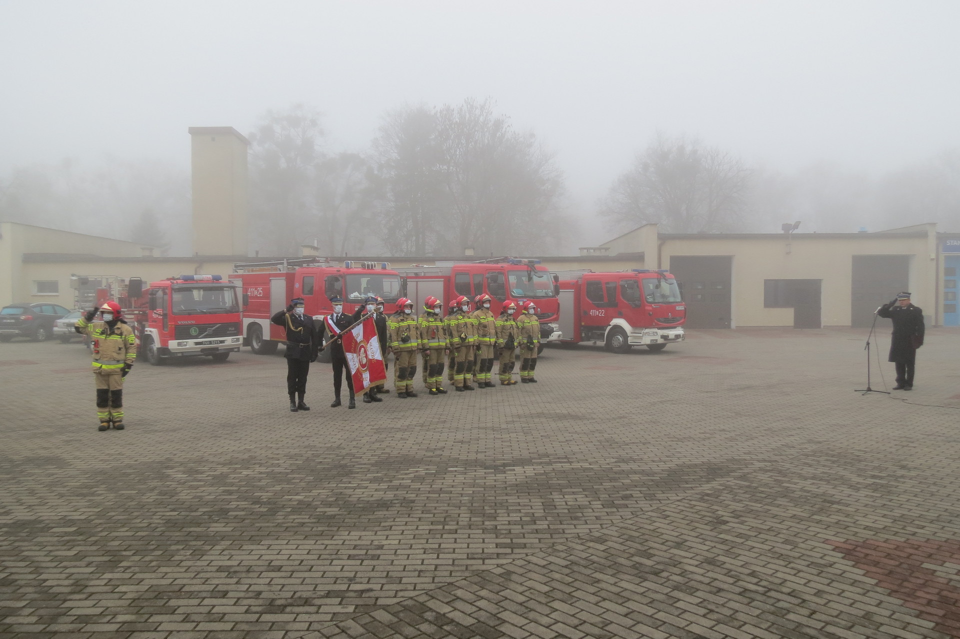11 listopada 2021r. w 103 rocznicę odzyskania niepodległości w Komendzie Powiatowej Państwowej Straży Pożarnej w Brodnicy odbyła się uroczysta zbiórka.W uroczystości wzięli udział strażacy zmian służbowych jednostki ratowniczo-gaśniczej. Po złożeniu meldunku Komendantowi Powiatowemu PSP w Brodnicy st. bryg. Waldemarowi Szrull, rozbrzmiał Mazurek Dąbrowskiego oraz dokonano uroczystego podniesienia flagi państwowej z okazji Narodowego Święta Niepodległości.Odczytano okolicznościowy list Komendanta Głównego Państwowej Straży Pożarnej nadbryg. Andrzeja Bartkowiaka skierowany do funkcjonariuszy oraz pracowników Państwowej Straży Pożarnej.