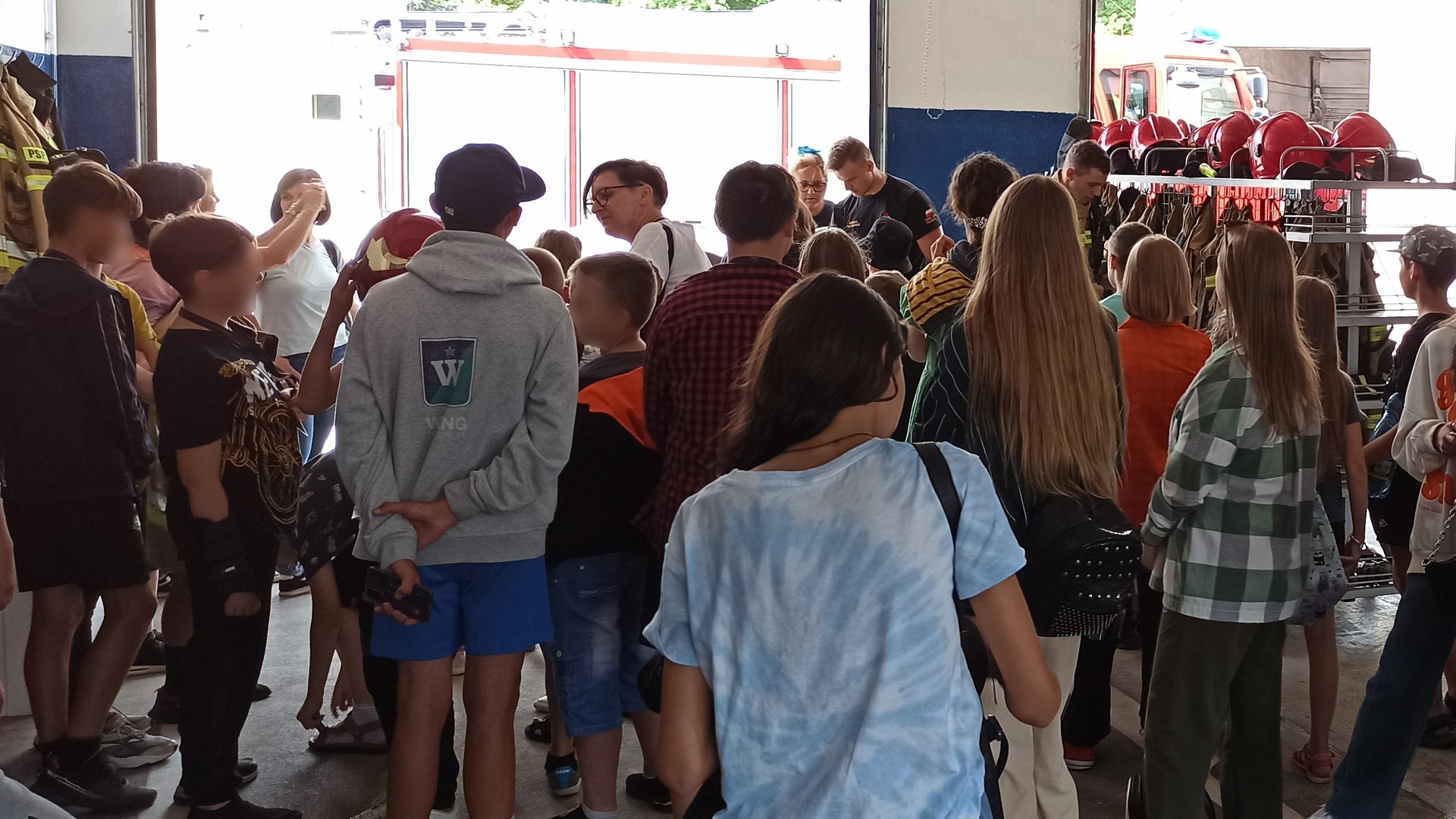 7 lipca 2022 r. w siedzibie Komendy Powiatowej Państwowej Straży Pożarnej w Brodnicy przebywała grupa dzieci – uczestników Brodnickiej Szkoły Letniej dla dzieci i młodzieży z Ukrainy.