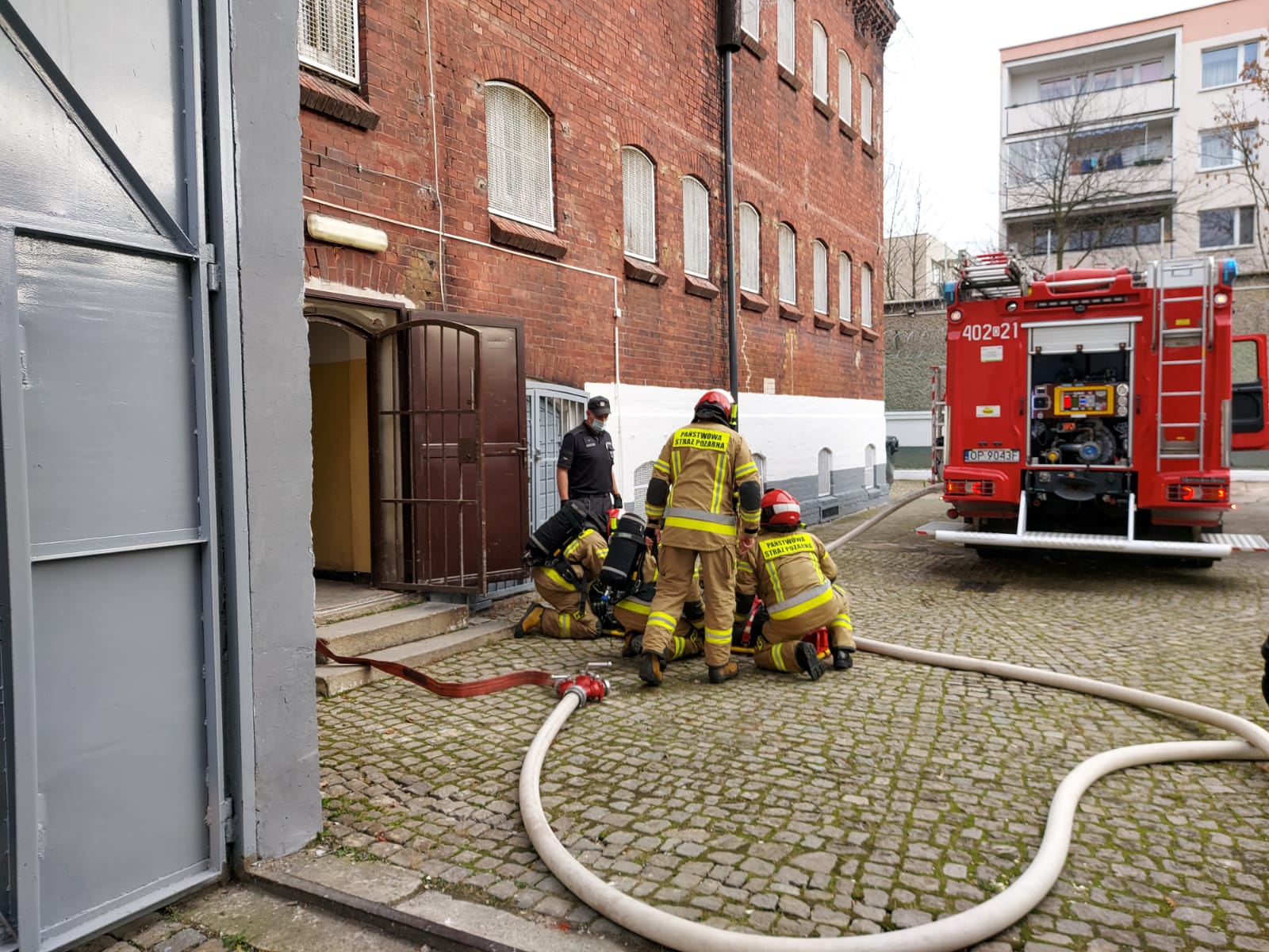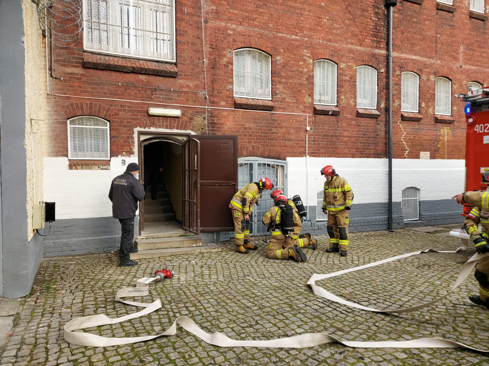 Ćwiczenia z zakresu ochrony przeciwpożarowej dotyczyły zaistnienia sytuacji zagrażającej życiu osób przebywających na terenie Zakładu Karnego.
