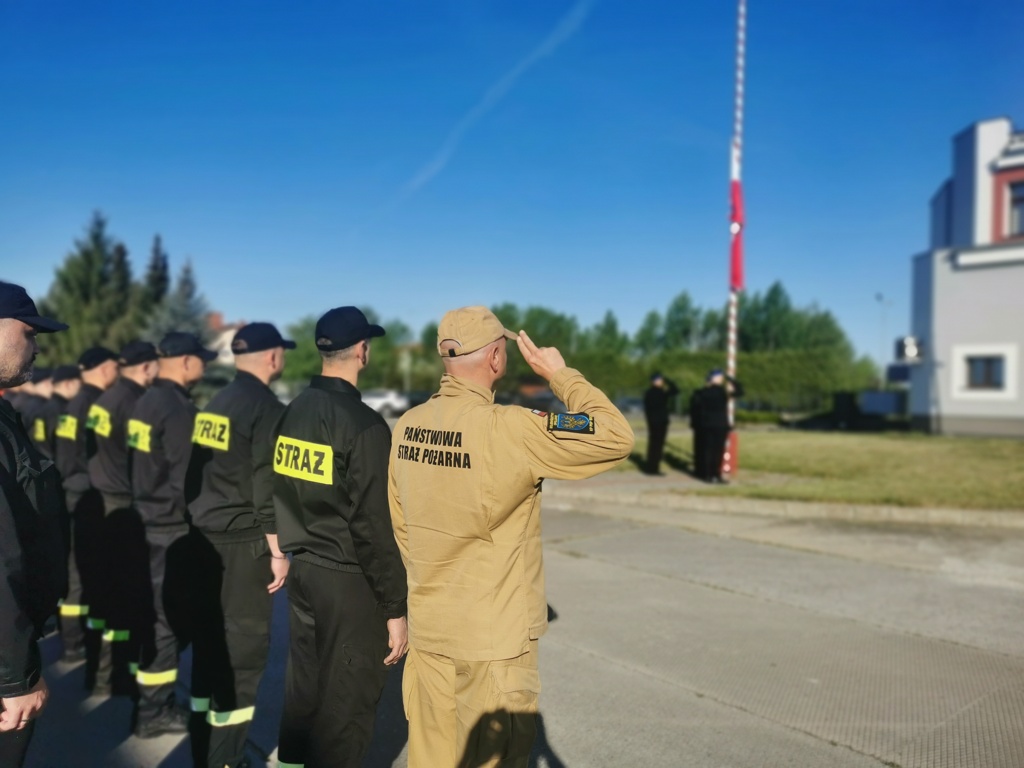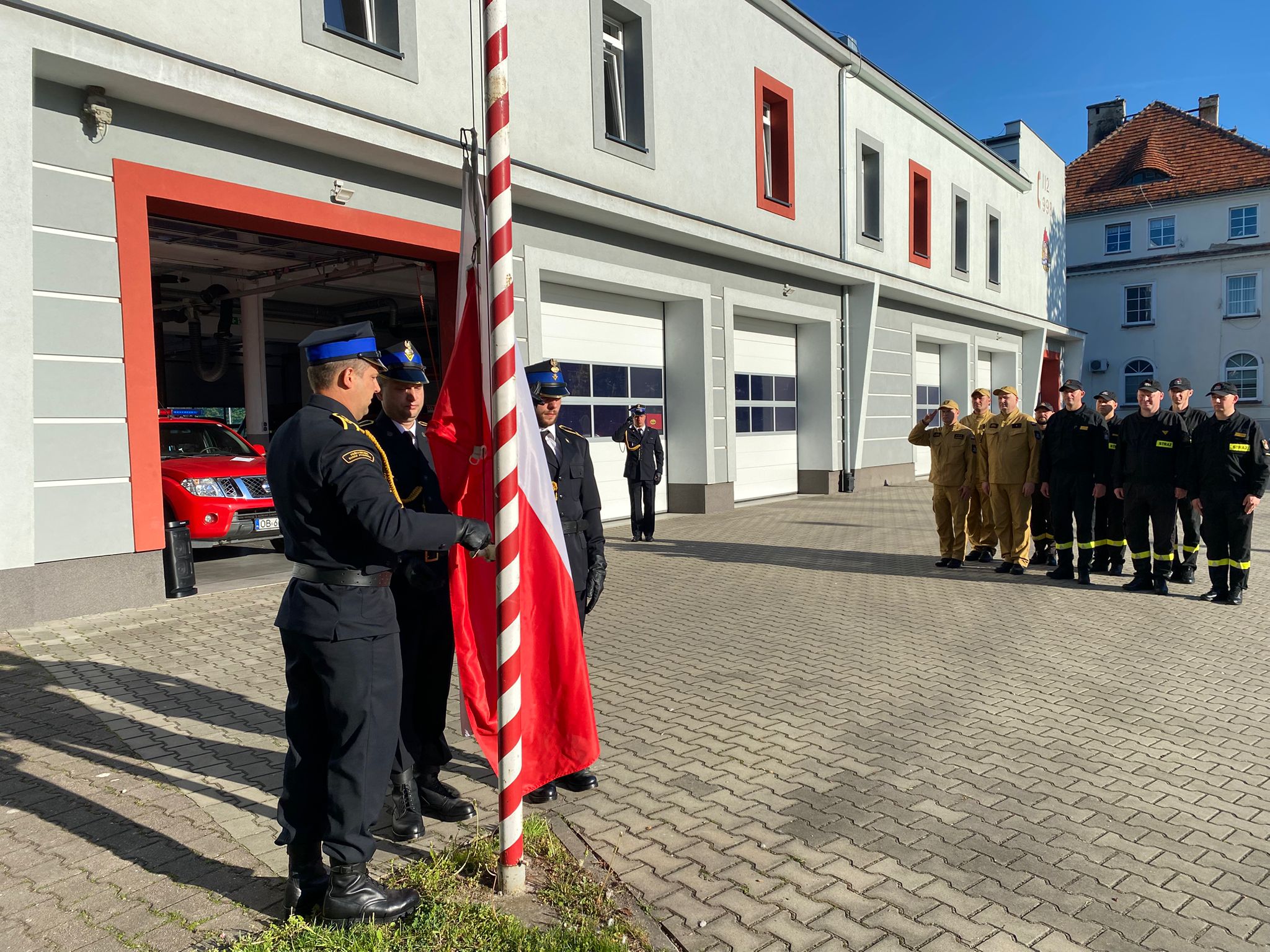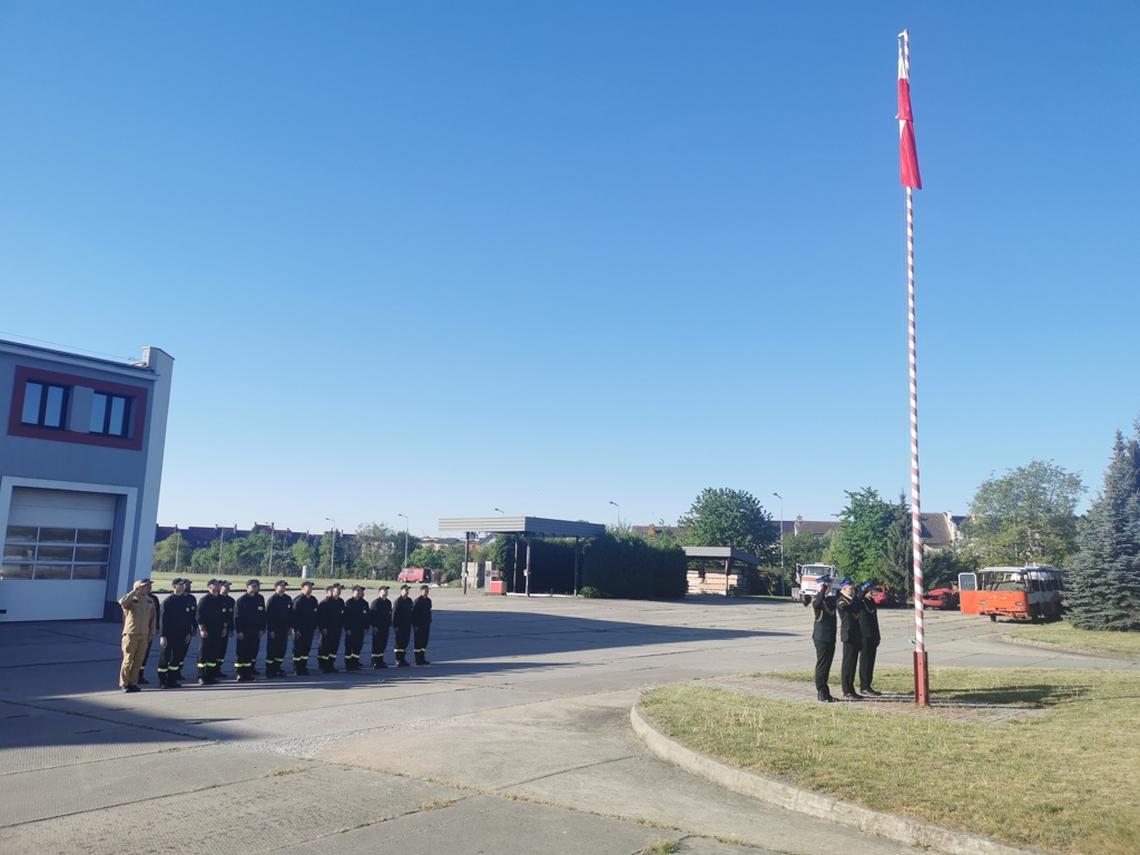 Dziś 2 maja 2025 roku z okazji Dnia Flagi Rzeczypospolitej Polskiej podczas zmiany służby na terenie Komendy Powiatowej Państwowej Straży Pożarnej w Brzegu (JRG 1 oraz JRG 2) dokonano uroczystego podniesienia flagi państwowej.