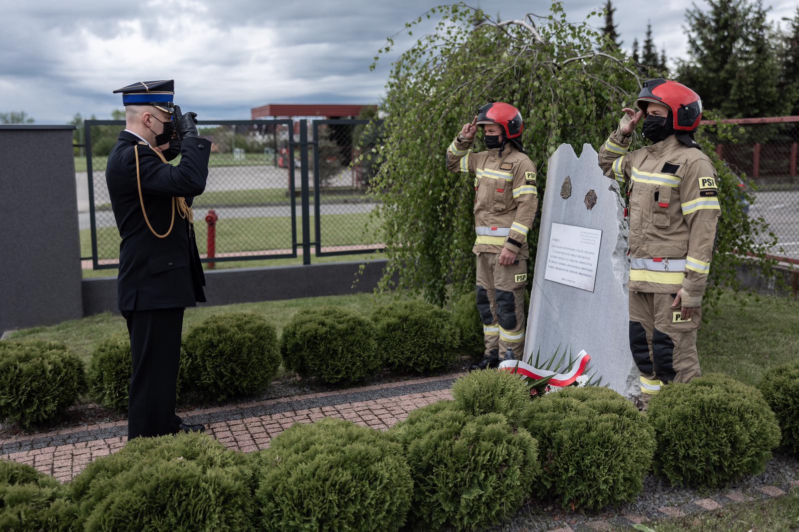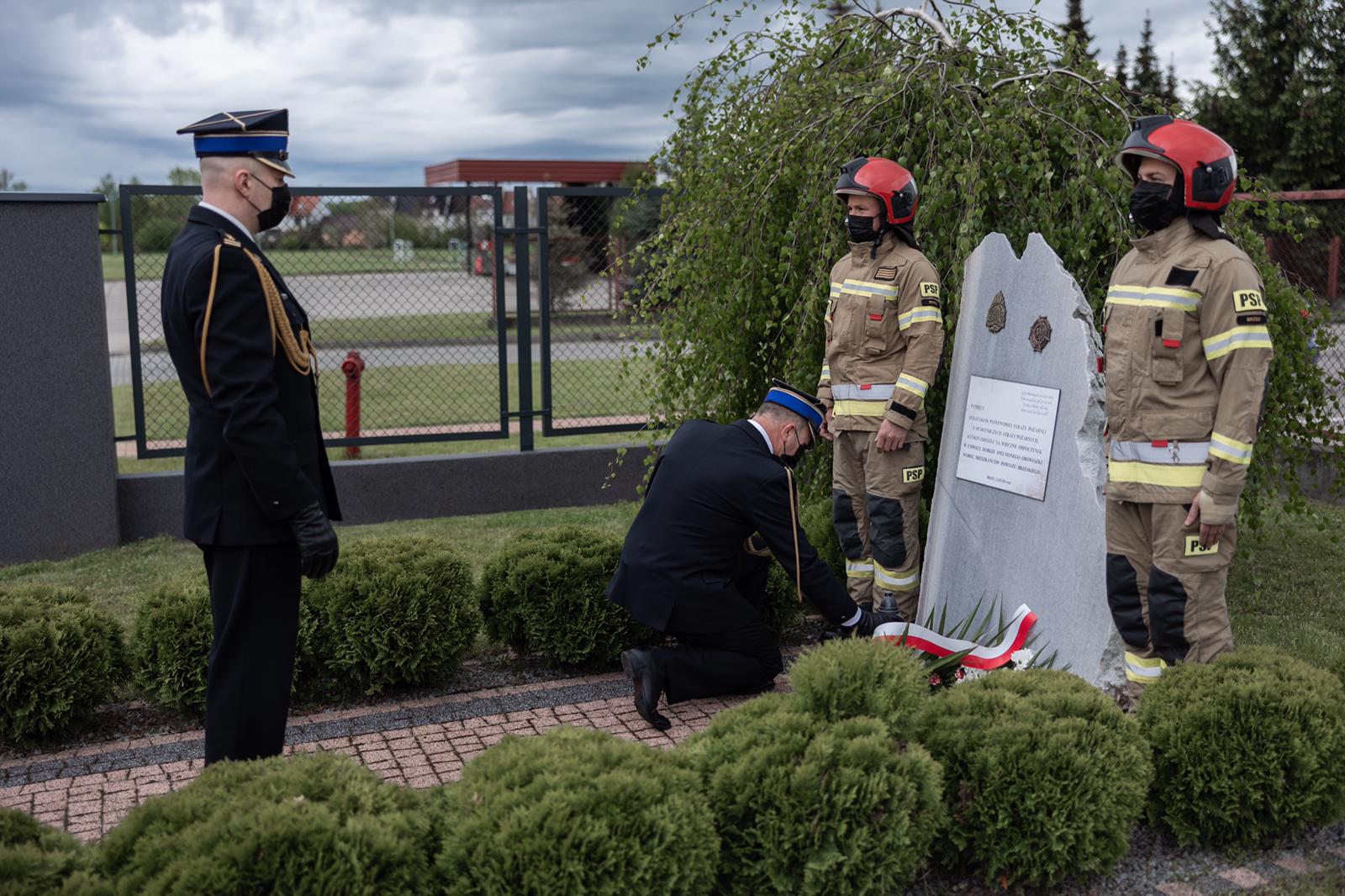 Uroczystości rozpoczęły się o godzinie 8:00 złożeniem hołdu i kwiatów pod pomnikiem poległych strażaków przed budynkiem Komendy Powiatowej Państwowej Straży Pożarnej w Brzegu.