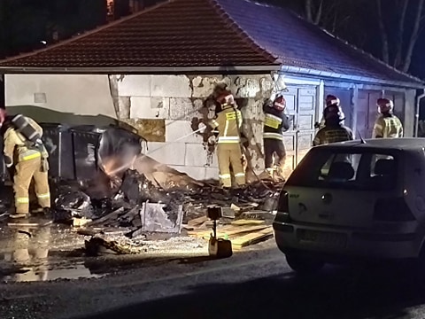 - sprawdzeniu pogorzeliska oraz budynku garażowego kamerą termowizyjną - brak zarzewi ognia.