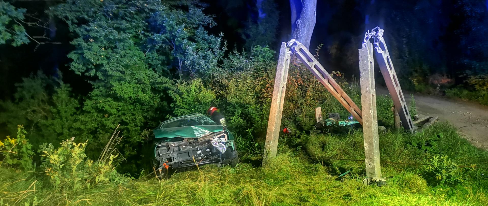 Po przybyciu na miejsce zdarzenia w wyniku przeprowadzonego rozpoznania wstępnego stwierdzono, że samochód osobowy uderzył w nieczynny słup energetyczny (słup betonowy po uderzeniu złamał się w pół) po czym wpadł do rowu. Kierowca samochodu osobowego jest uwięziony w samochodzie.