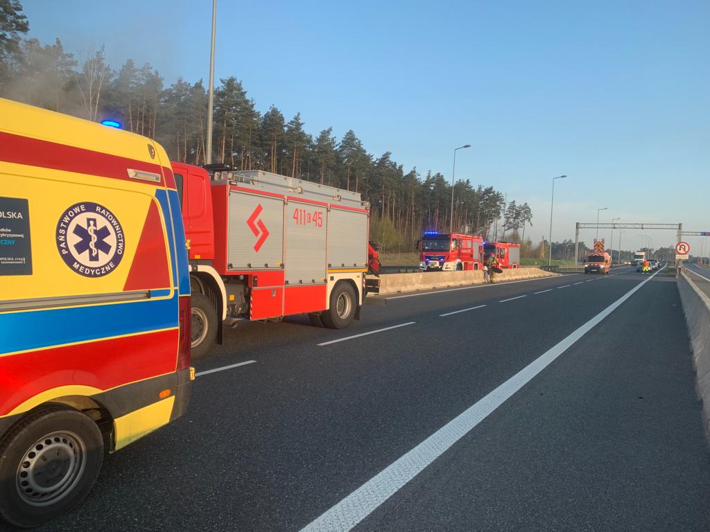 W działaniach uczestniczyły 3 x JRG Brzesko, ZRM, Policja, Służby zabezpieczenia autostrady.