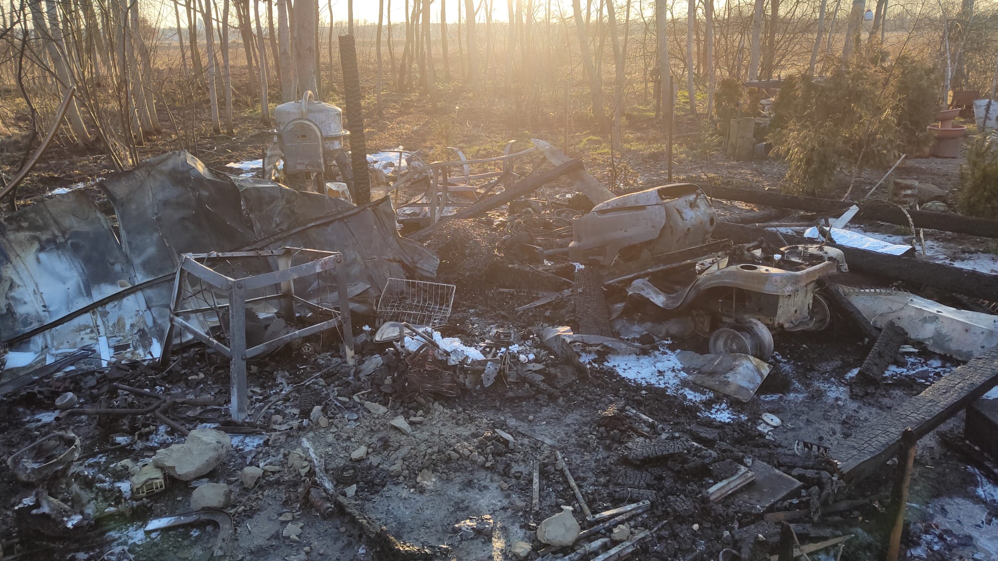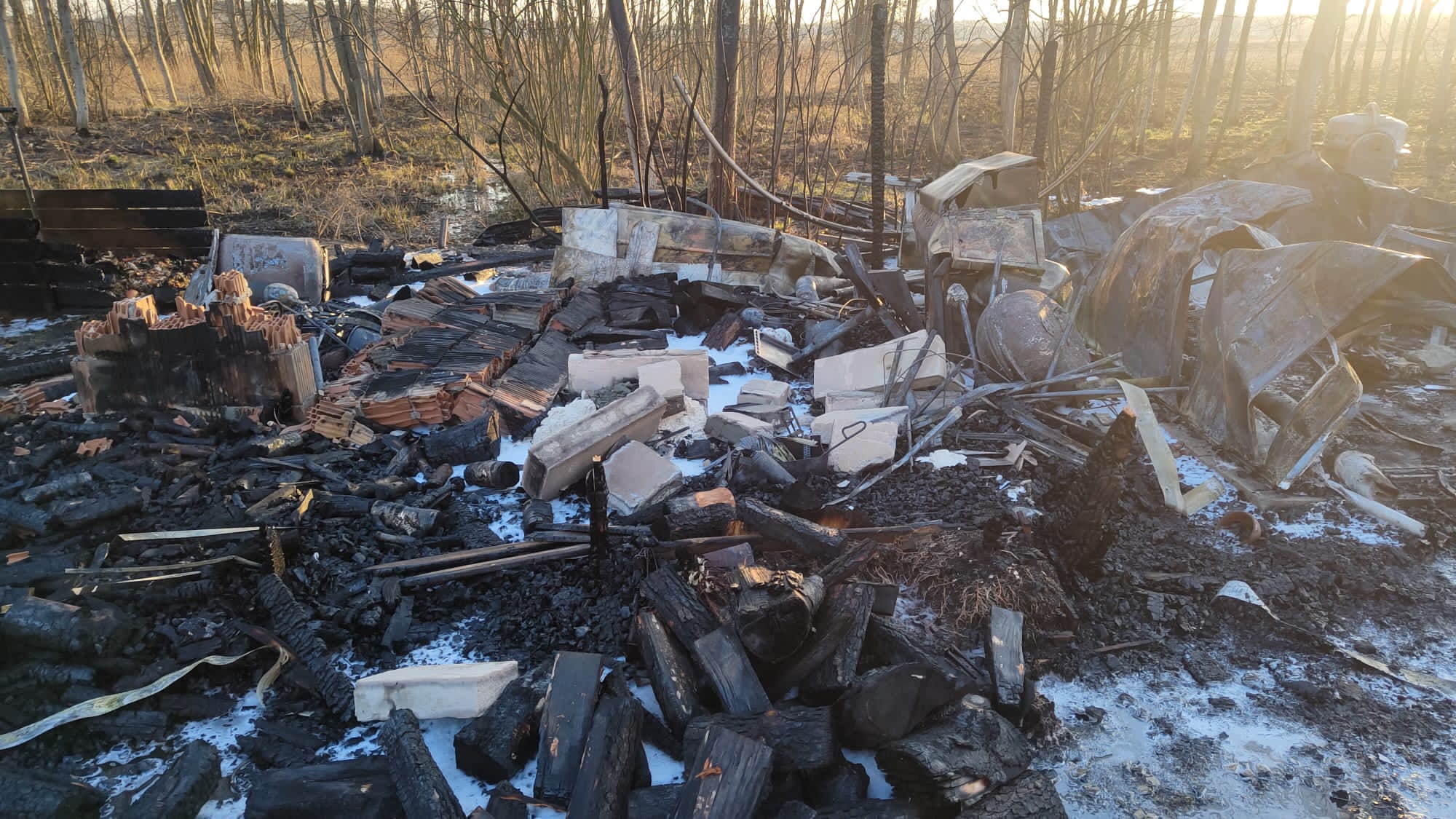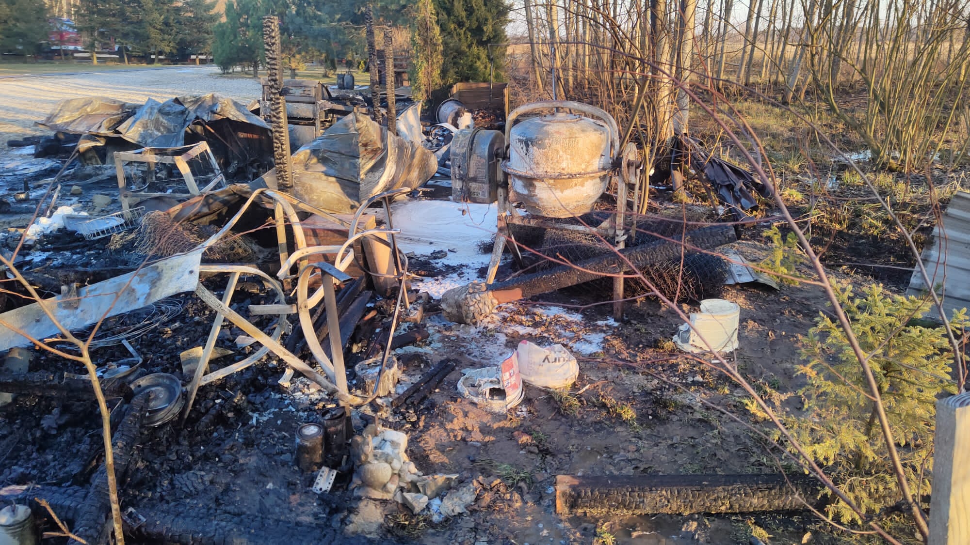 Spaleniu uległ całkowicie budynek garażowy wraz z całym wyposażeniem oraz elewacja budynku mieszkalnego.