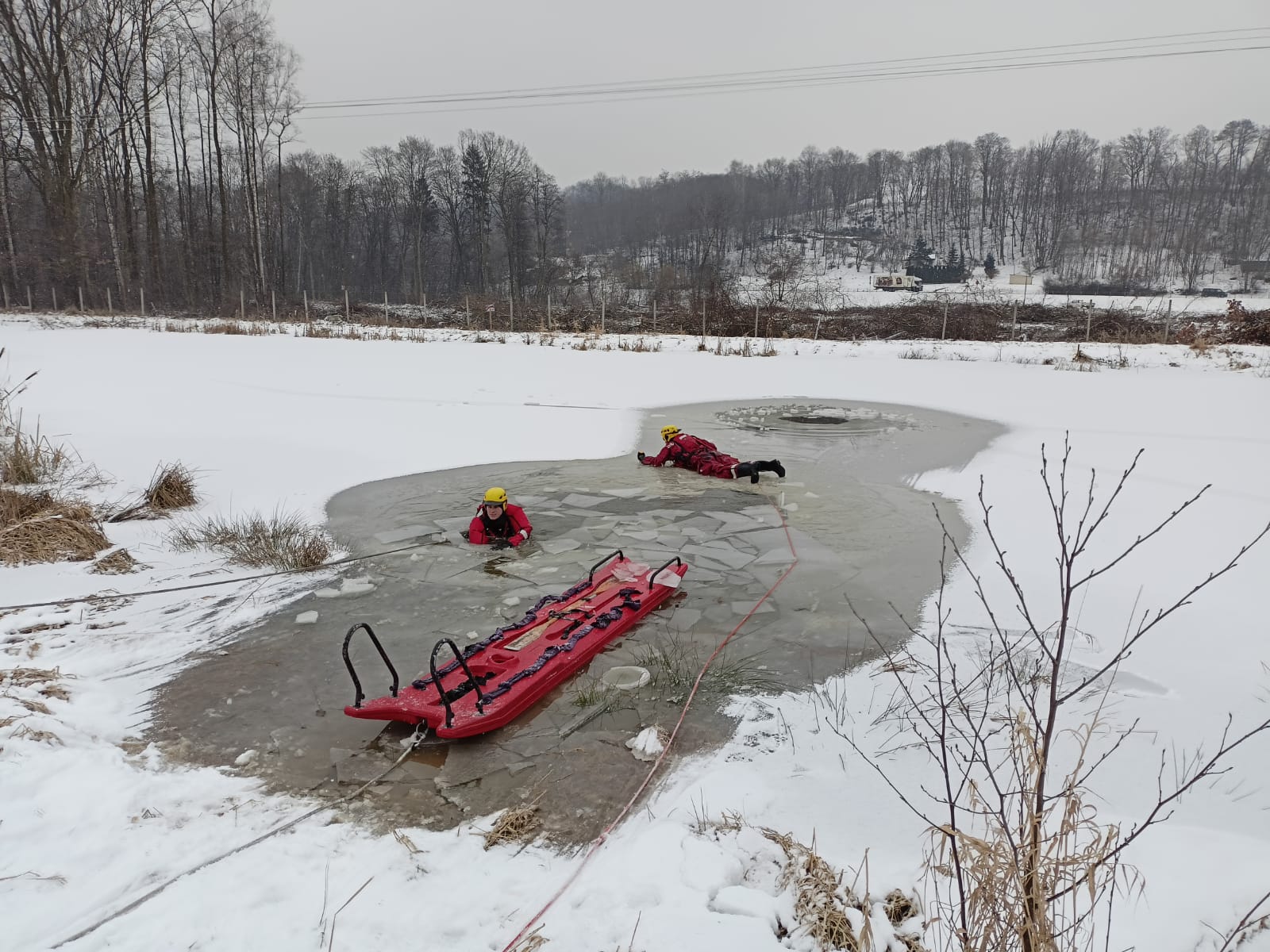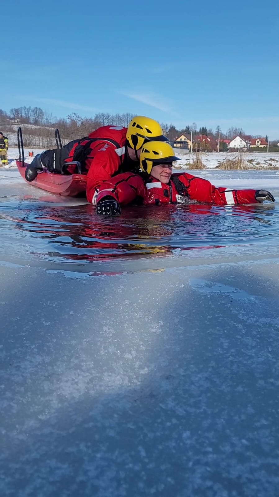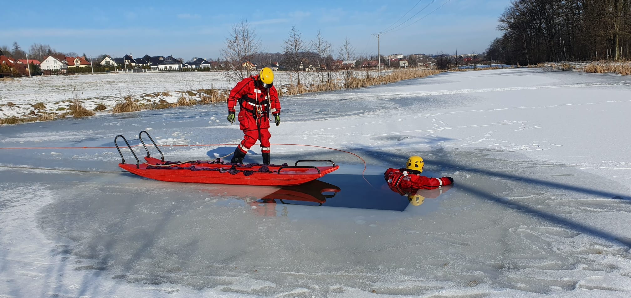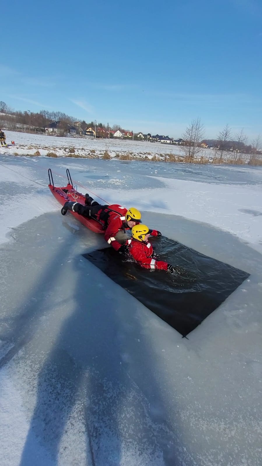 Aura w miesiącu lutym sprzyjała ćwiczeniom z zakresu ratownictwa na obszarach wodnych podczas działań na lodzie.