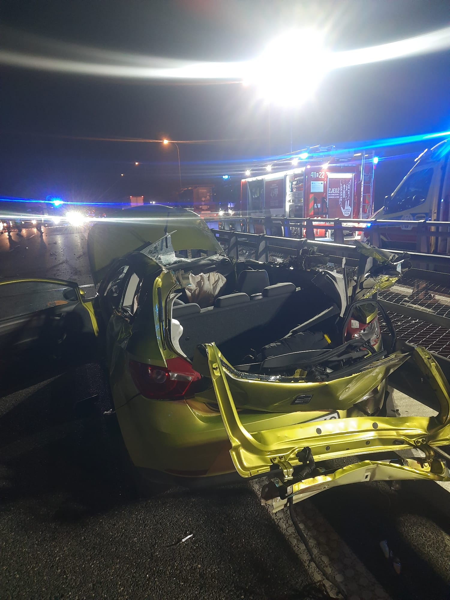 W czwartek, 9 kwietnia 2026 r., w godzinach nocnych na autostradzie A4, na wysokości MOP Bagno (Mokrzyska), doszło do poważnego wypadku drogowego. W wyniku zderzenia samochodu osobowego z ciężarówką trzy osoby podróżujące autem osobowym zostały poszkodowane i przetransportowane do szpitali w Brzesku oraz Krakowie.