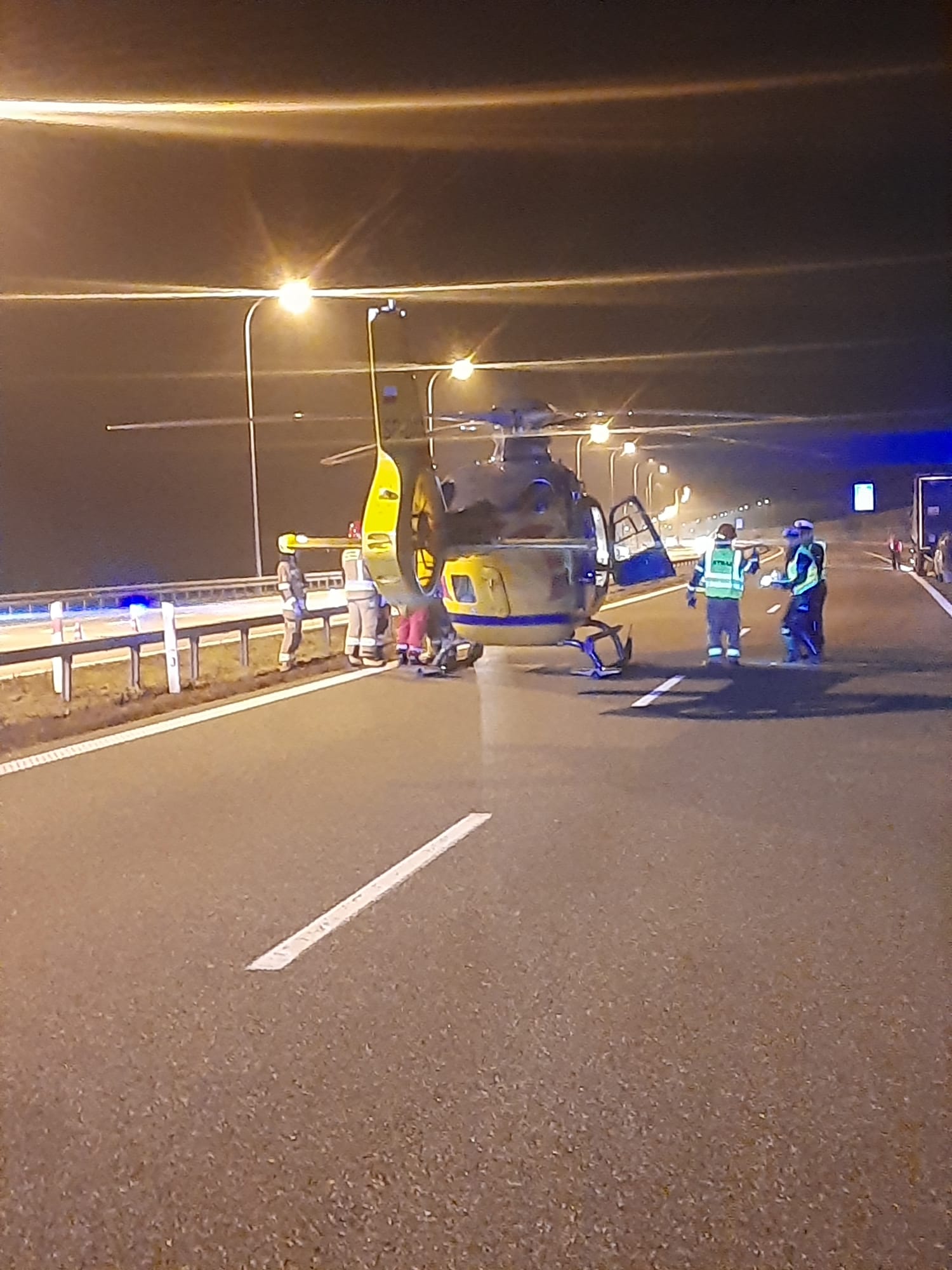 Na miejscu lądował śmigłowiec Lotniczego Pogotowia Ratunkowego, który zabrał poszkodowanego, u którego udało się przywrócić czynności życiowe. Pas ruchu w kierunku Krakowa był całkowicie zablokowany przez kilka godzin.