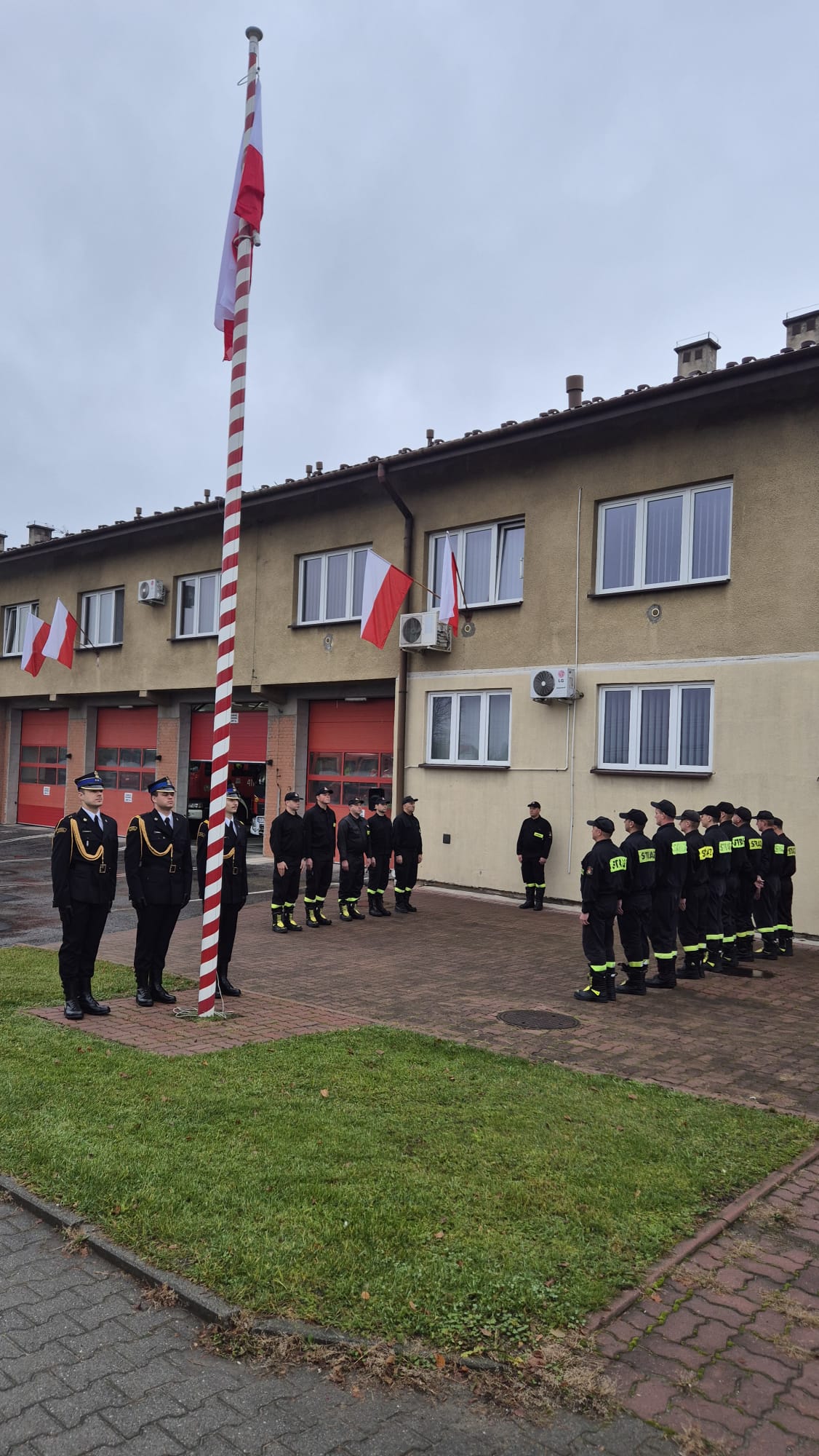 Na terenie Komendy Powiatowej Państwowej Straży Pożarnej w Brzesku odbyła się uroczysta zbiórka z okazji Narodowego Święta Niepodległości podczas której odśpiewano hymny oraz podniesiono flagę państwową na maszt.