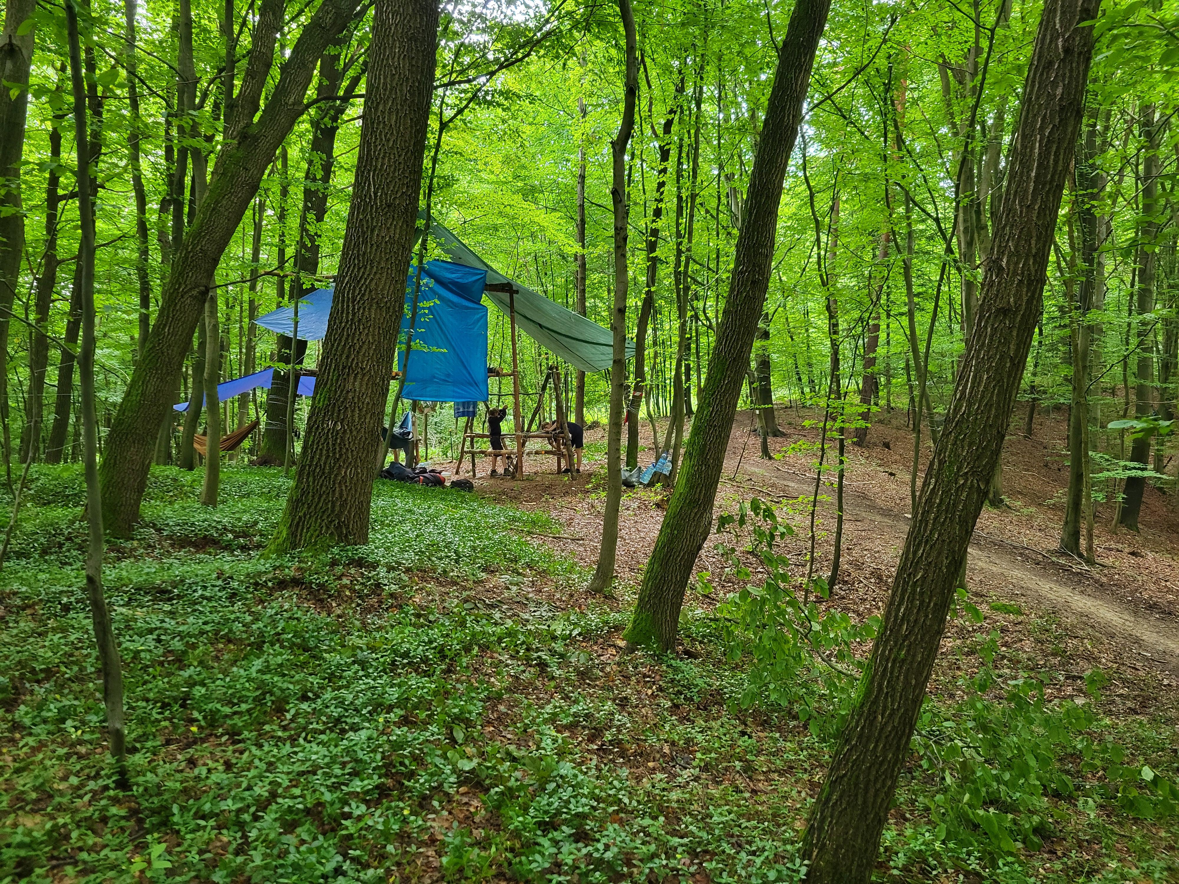 Dodatkowo w dniu 08 lipca zweryfikowano miejsce lokalizacji nowych obozowisk na terenie kompleksu leśnego co skutkowało konieczności podjęcia działań wraz z miejscową jednostką Ochotniczej Straży Pożarnej w Dołach w celu usunięcia zwisającego konaru bezpośrednio nad obozowiskiem oraz usunięcia częściowo powalonych i spróchniałych drzew.