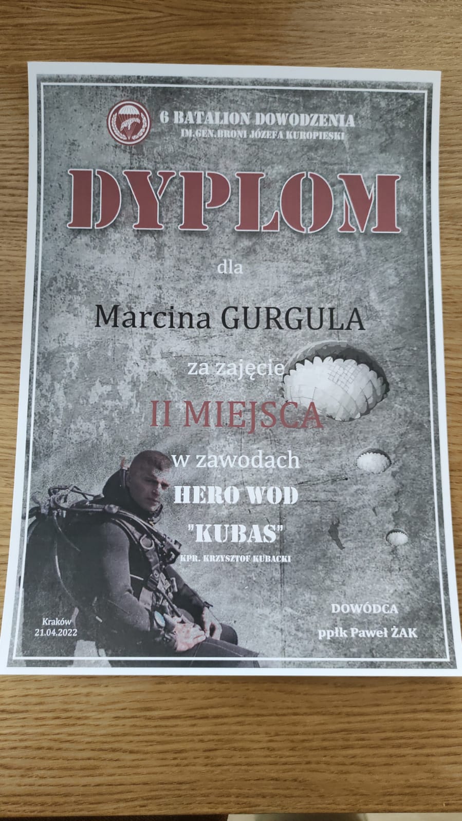 21 kwietnia 2022 r. na terenie 6 Batalionu Dowodzenia w Krakowie, odbyły się zawody sportowe „HERO WOD KUBAS” ku pamięci śp. kpr. Krzysztofa Kubackiego, żołnierza wojsk powietrzno-desantowych, który stracił życie na służbie 12.07.2012 r. w wyniku nieszczęśliwego wypadku podczas wykonywania skoku spadochronowego.