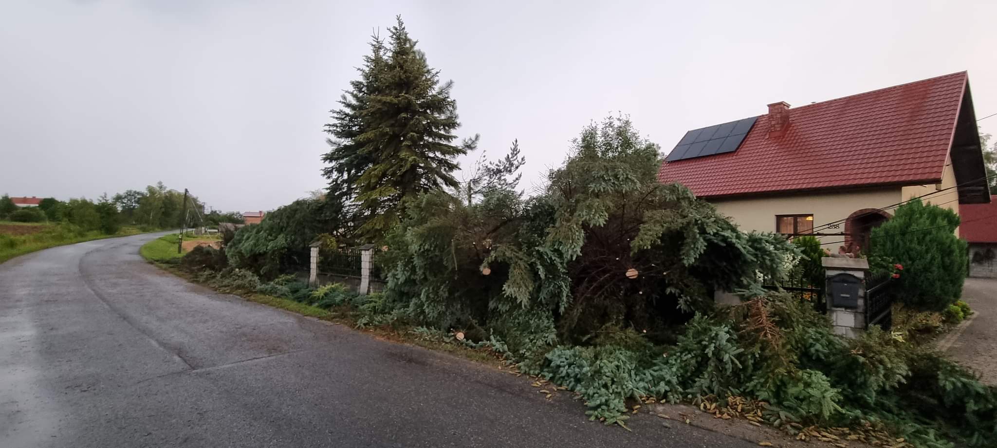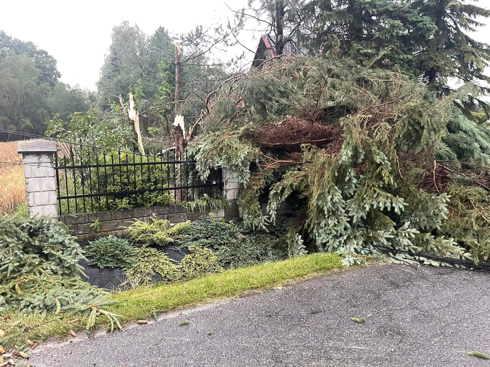 W wyniku wyładowań atmosferycznych, silnego i porywistego wiatru oraz intensywnych opadów deszczu odnotowano: