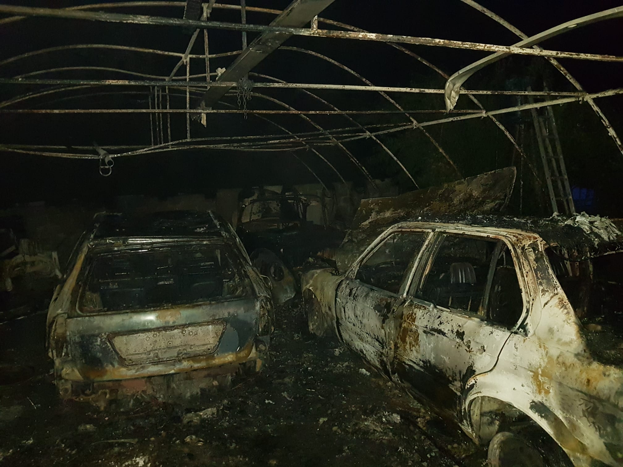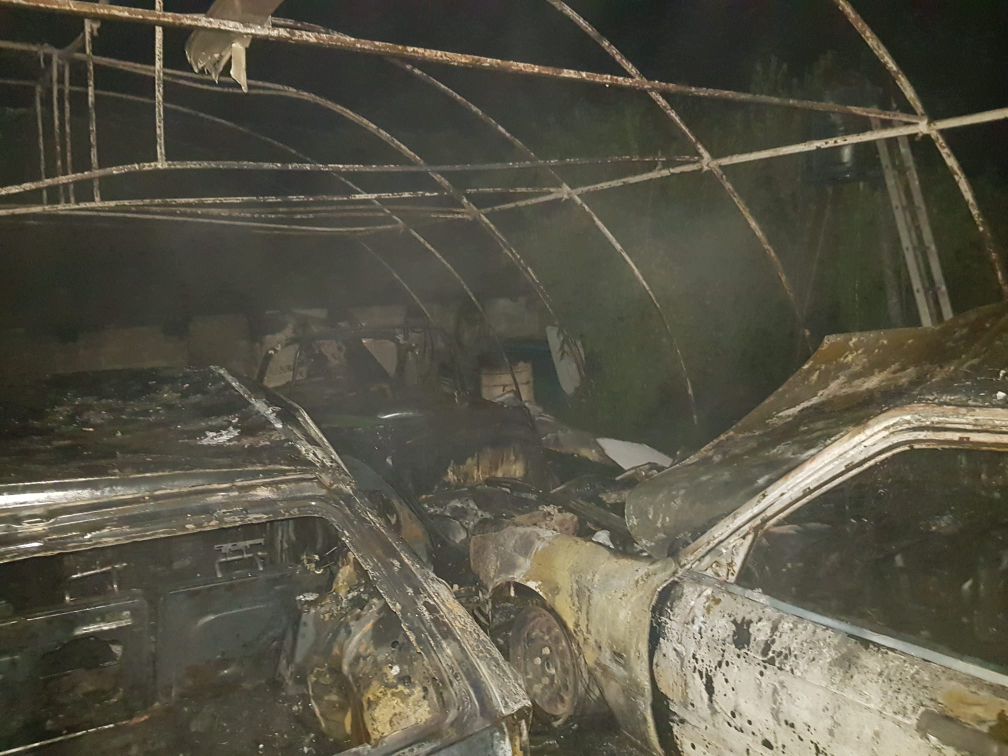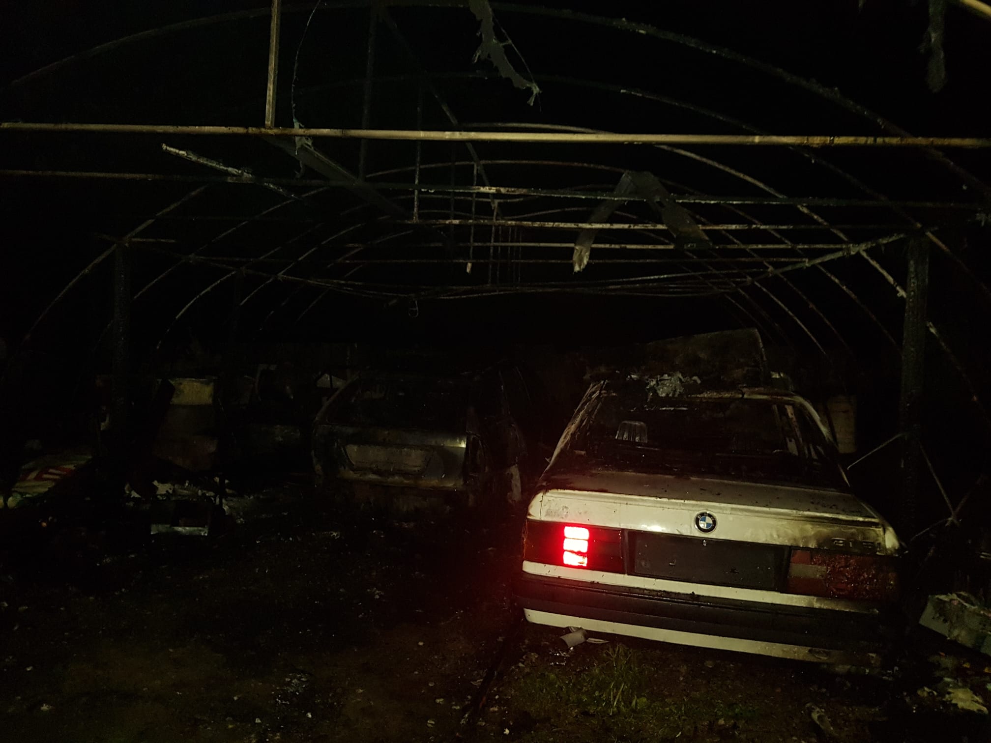 W wyniku zdarzenia spaleniu uległy trzy pojazdy osobowe oraz sprzęt rolniczo ogrodniczy.
