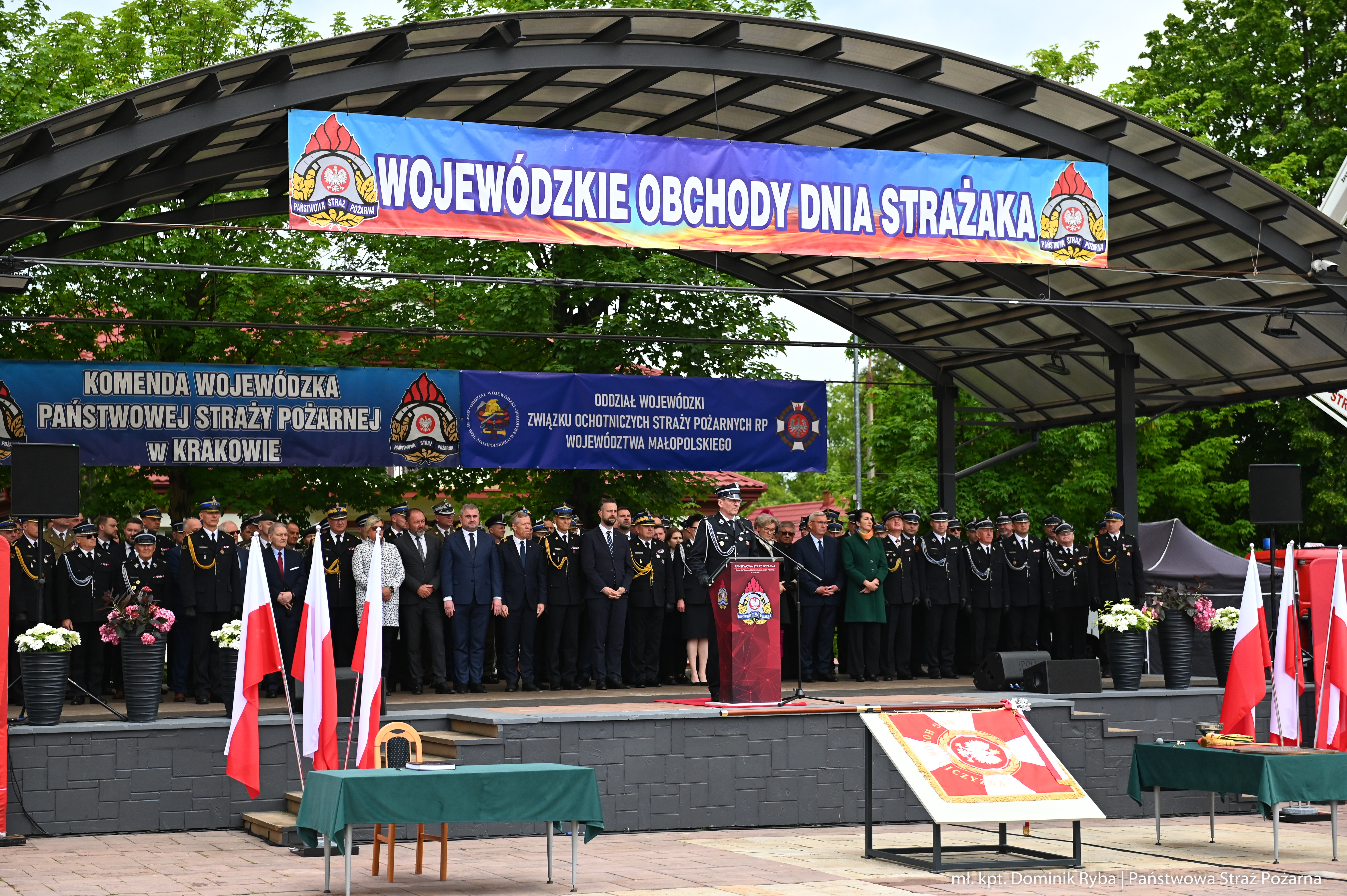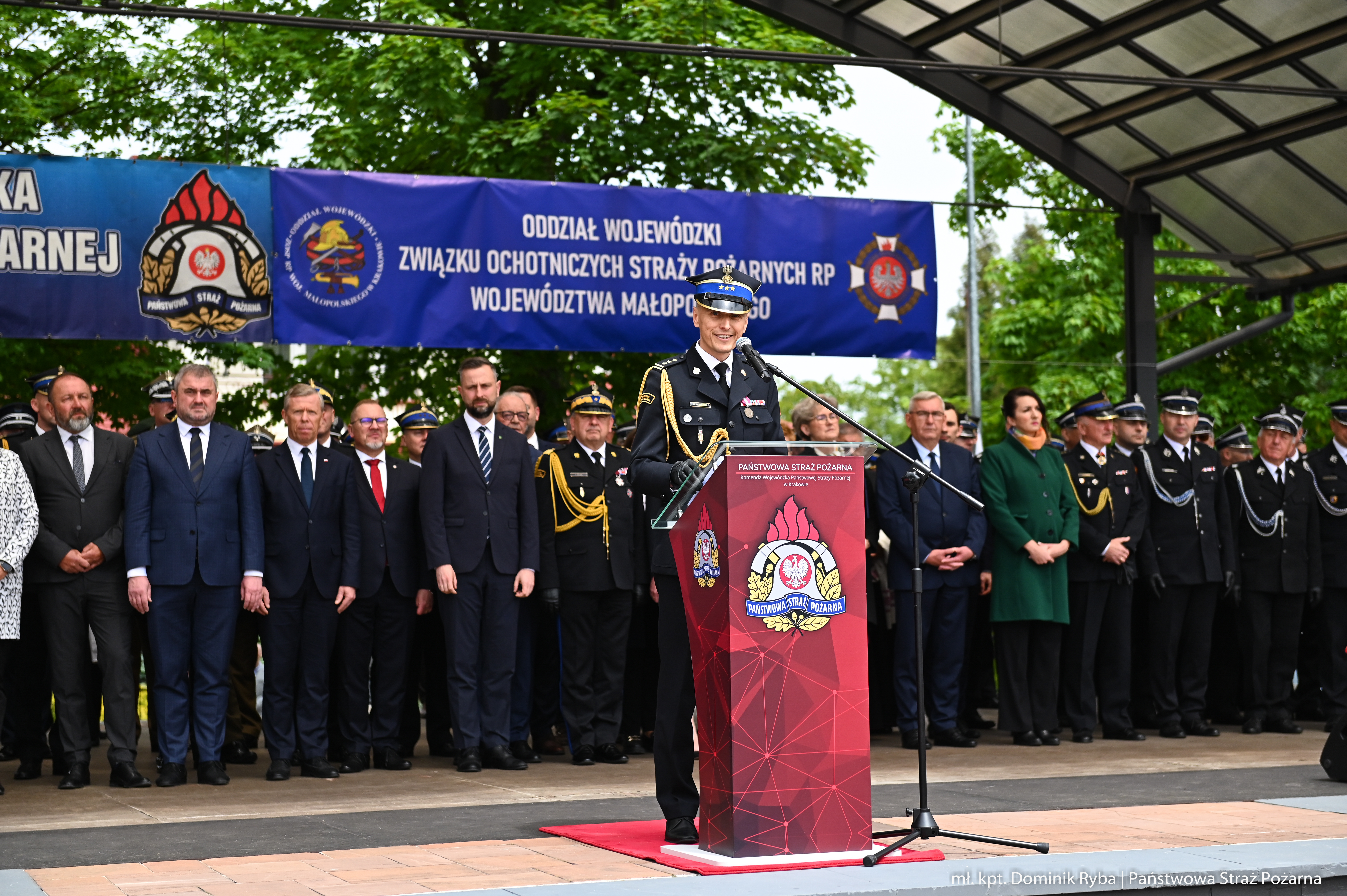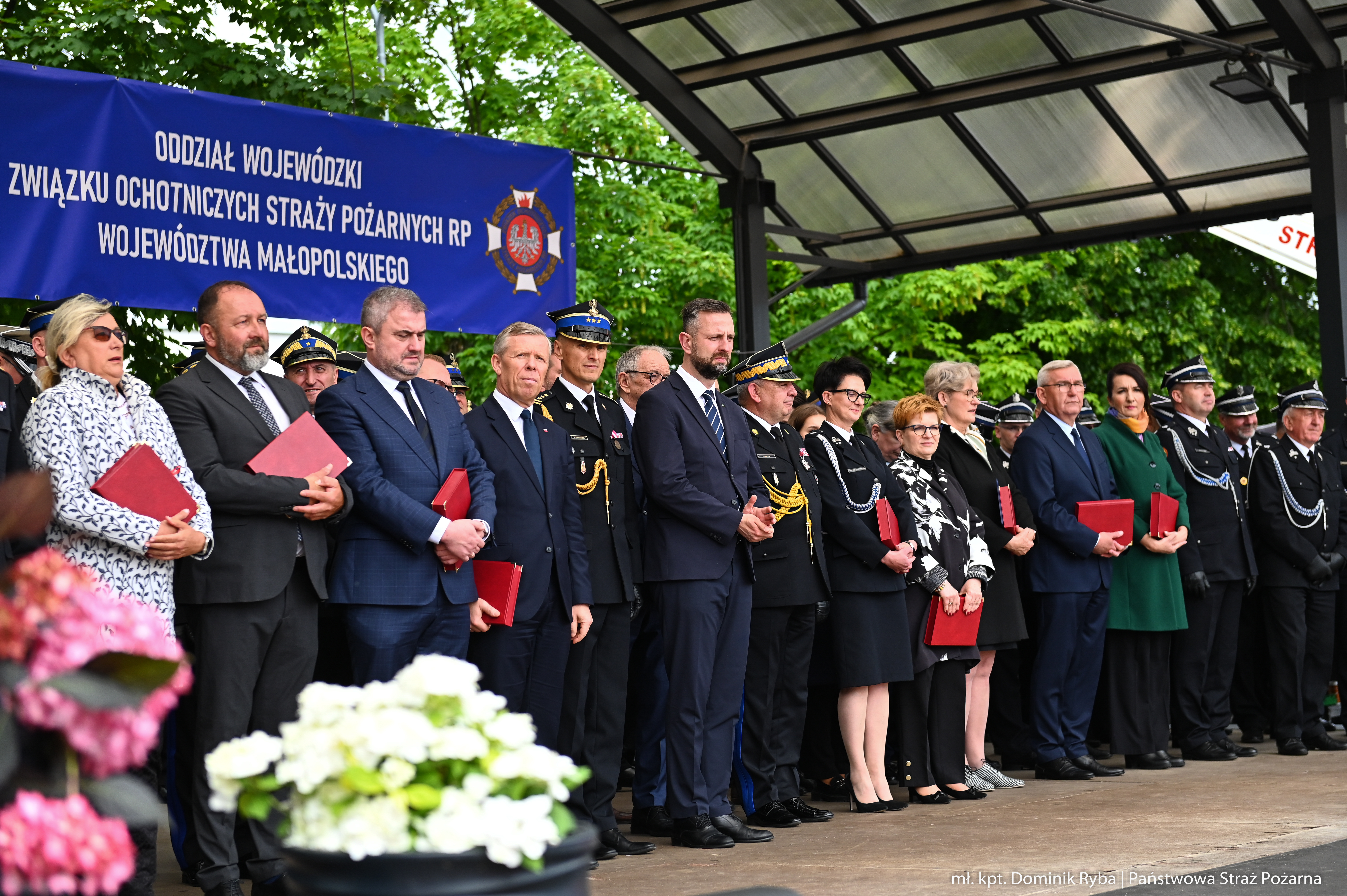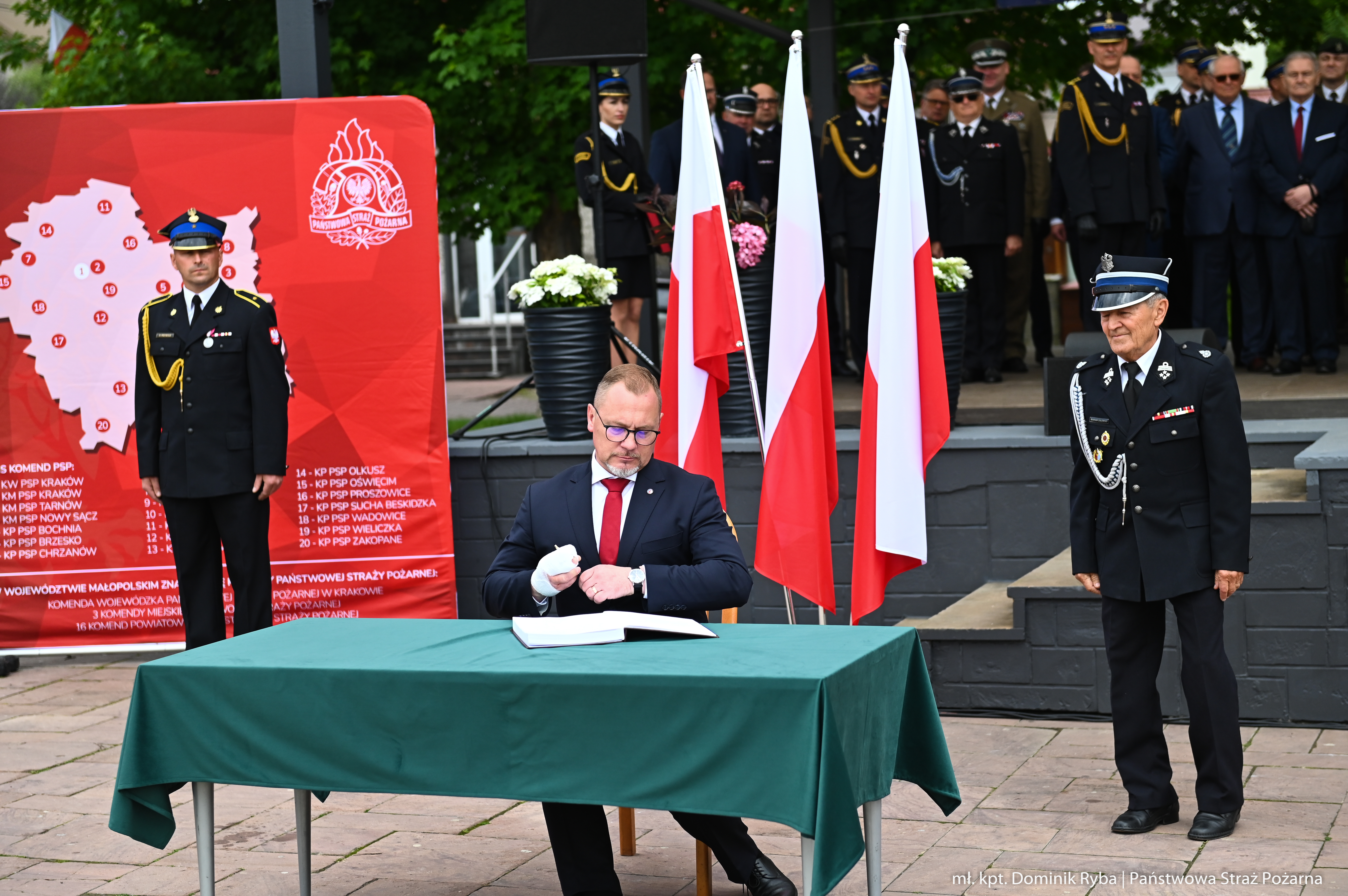 Podczas uroczystości szef małopolskich strażaków, st. bryg. Przemysław Przęczek, nawiązał do historii brzeskiej jednostki, przypominając o tragicznym pożarze z 1904 roku, który zniszczył ponad 400 budynków w mieście.