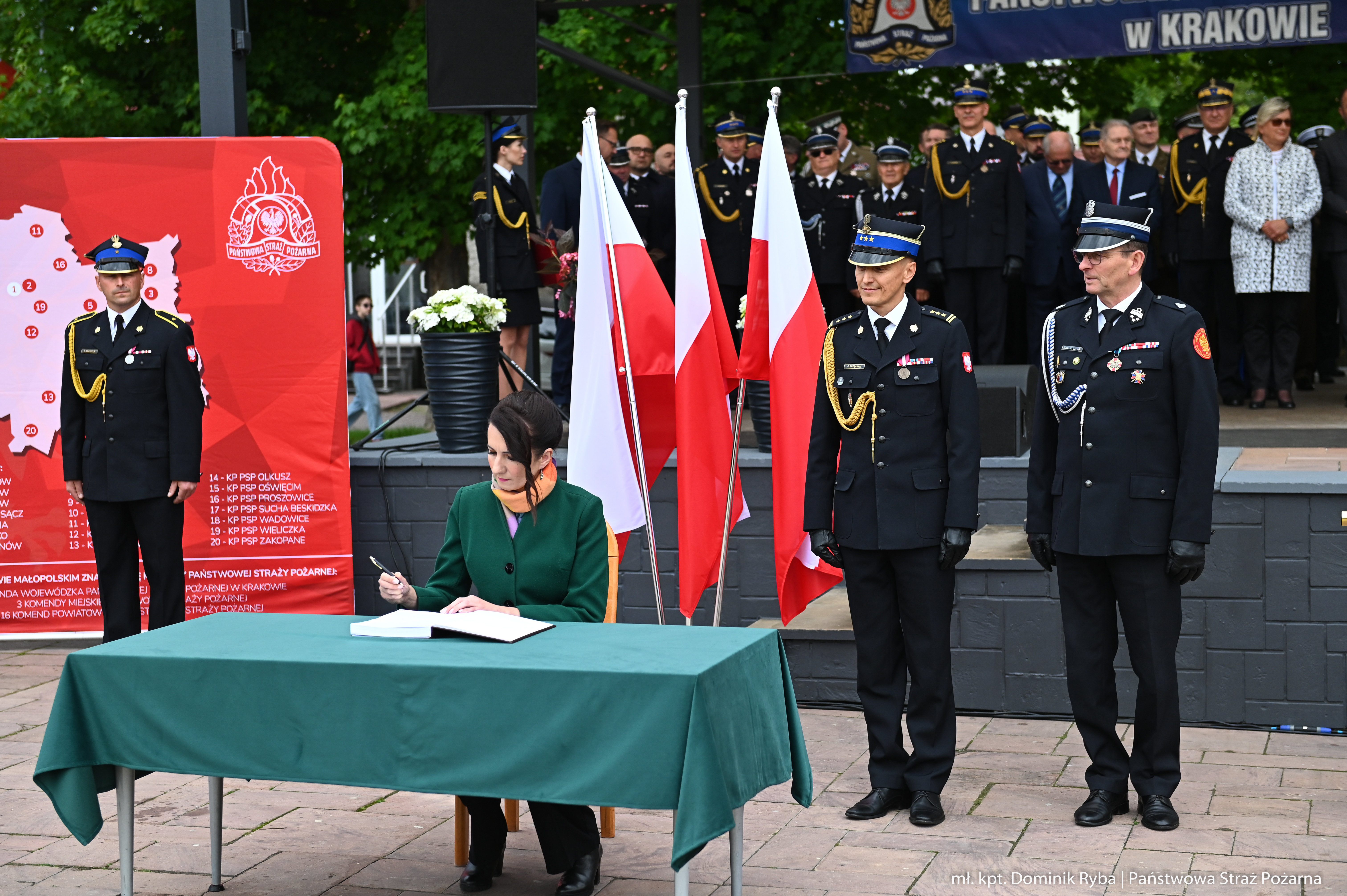 Uroczystości w Brzesku były również okazją do integracji i radosnego świętowania w gronie całej strażackiej społeczności. Przy Miejskim Ośrodku Kultury zorganizowano strefę rodzinną z licznymi atrakcjami, w tym pokazami sprzętu ratowniczego, konkursami i zajęciami dla dzieci. Namiot promocyjny PSP przyciągał najmłodszych, którzy mogli poznać tajniki zawodu strażaka oraz wziąć udział w zabawach edukacyjnych.