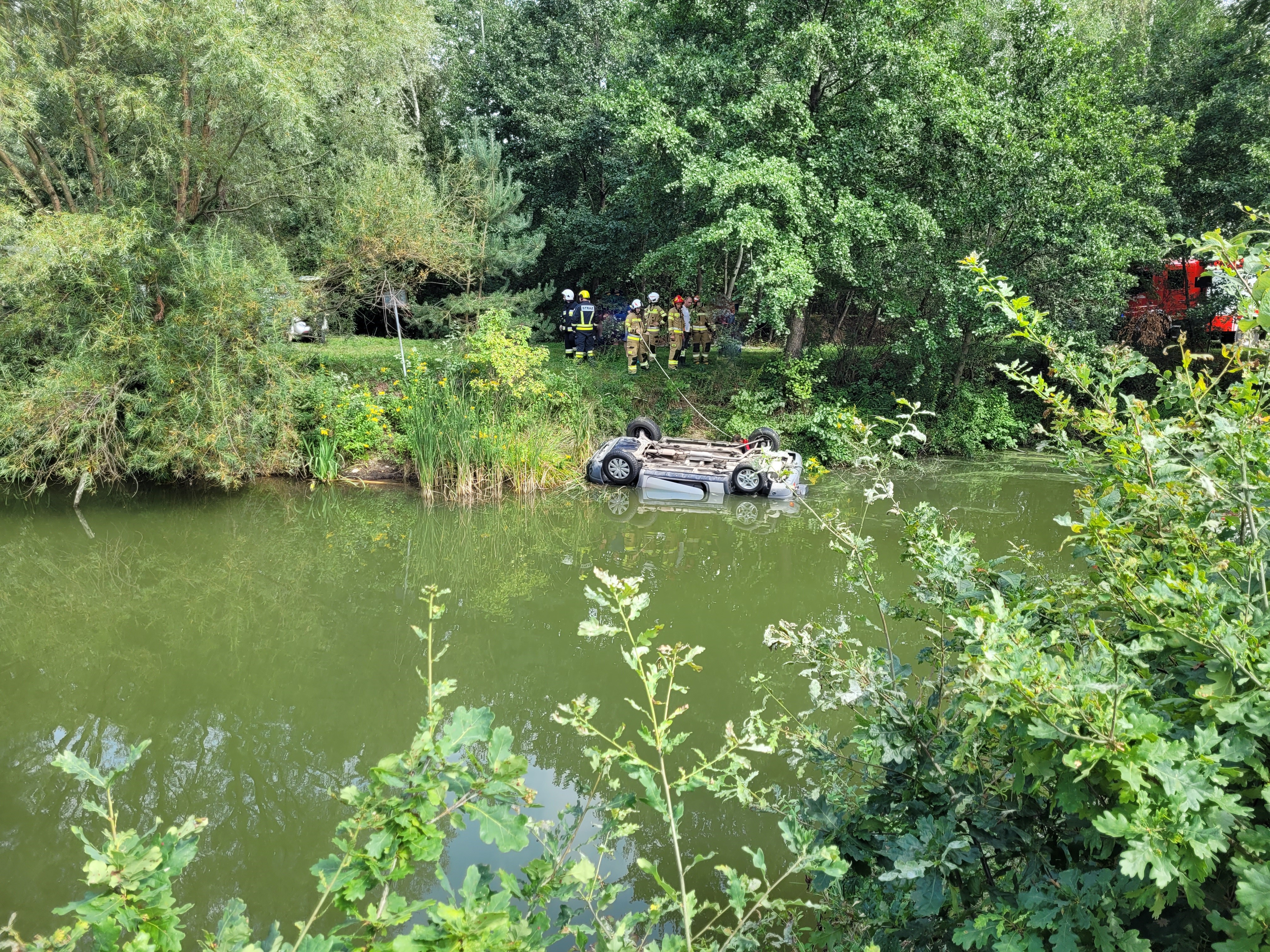 24 sierpnia w godzinach popołudniowych do Stanowiska Kierowania Komendanta Powiatowego Państwowej Straży Pożarnej w Brzesku wpłynęła informacja o pojeździe, który stoczył się do stawu.