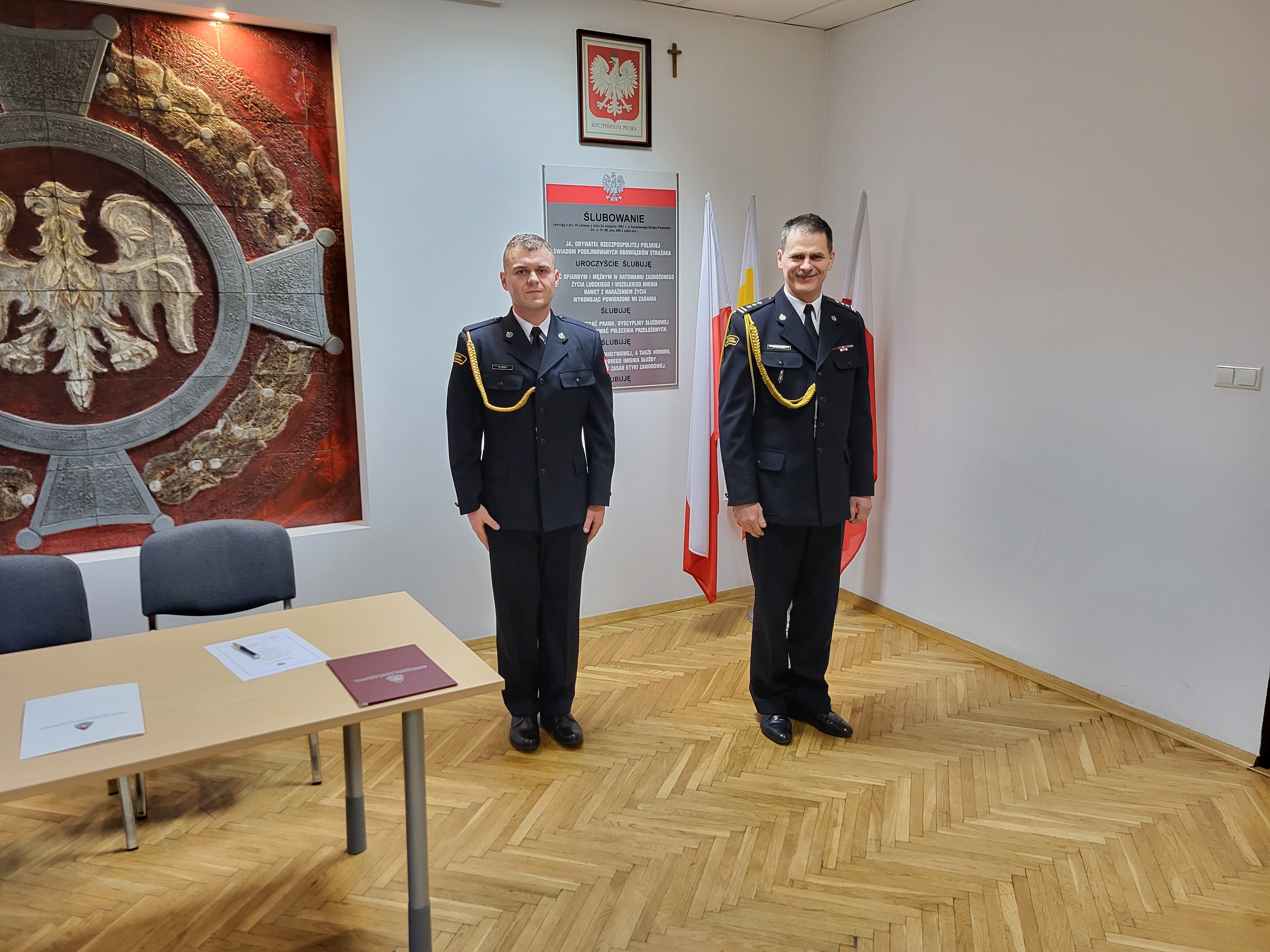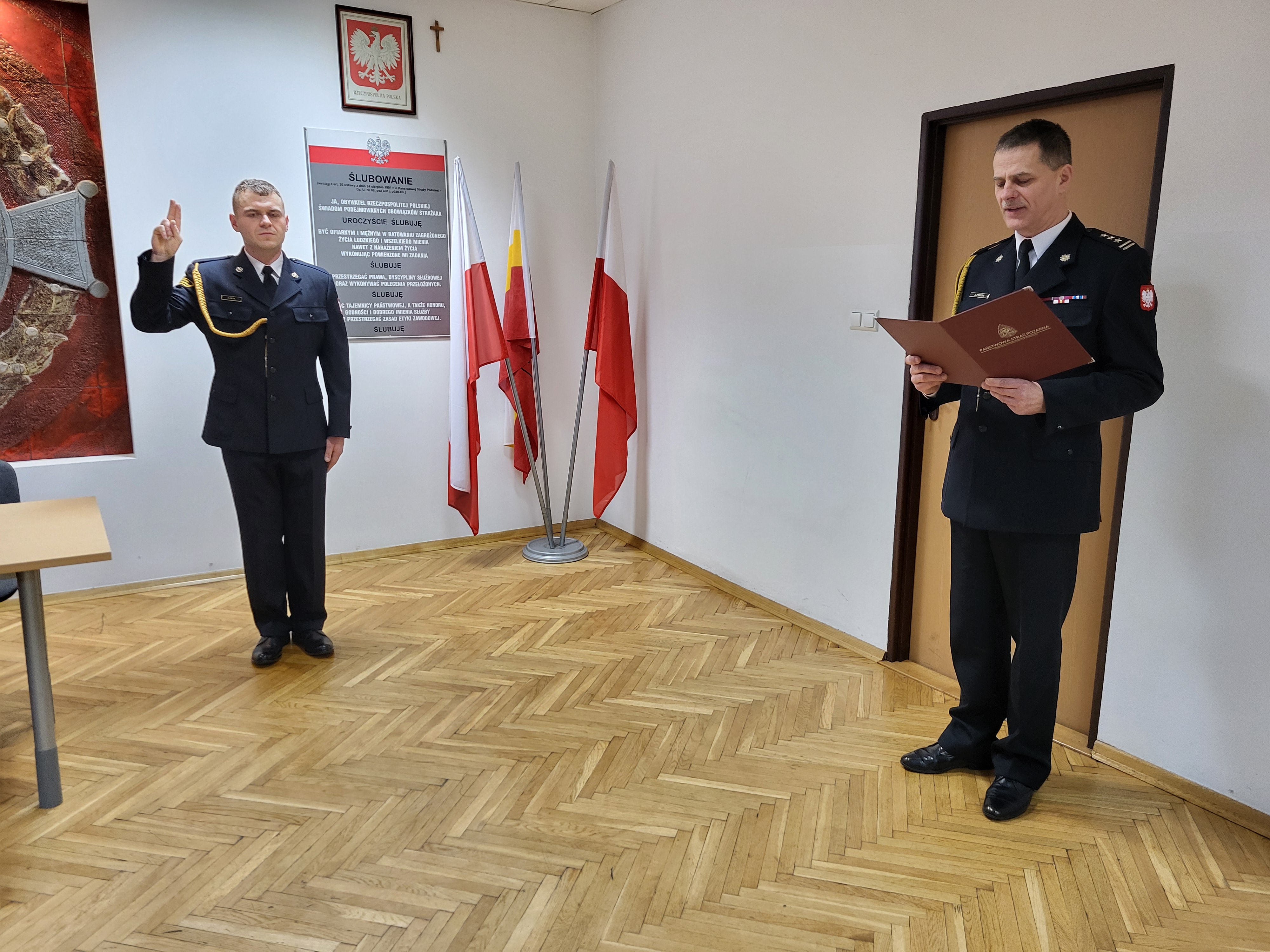 Podejmując służbę w Państwowej Straży Pożarnej, strażak składa ślubowanie według następującej roty: