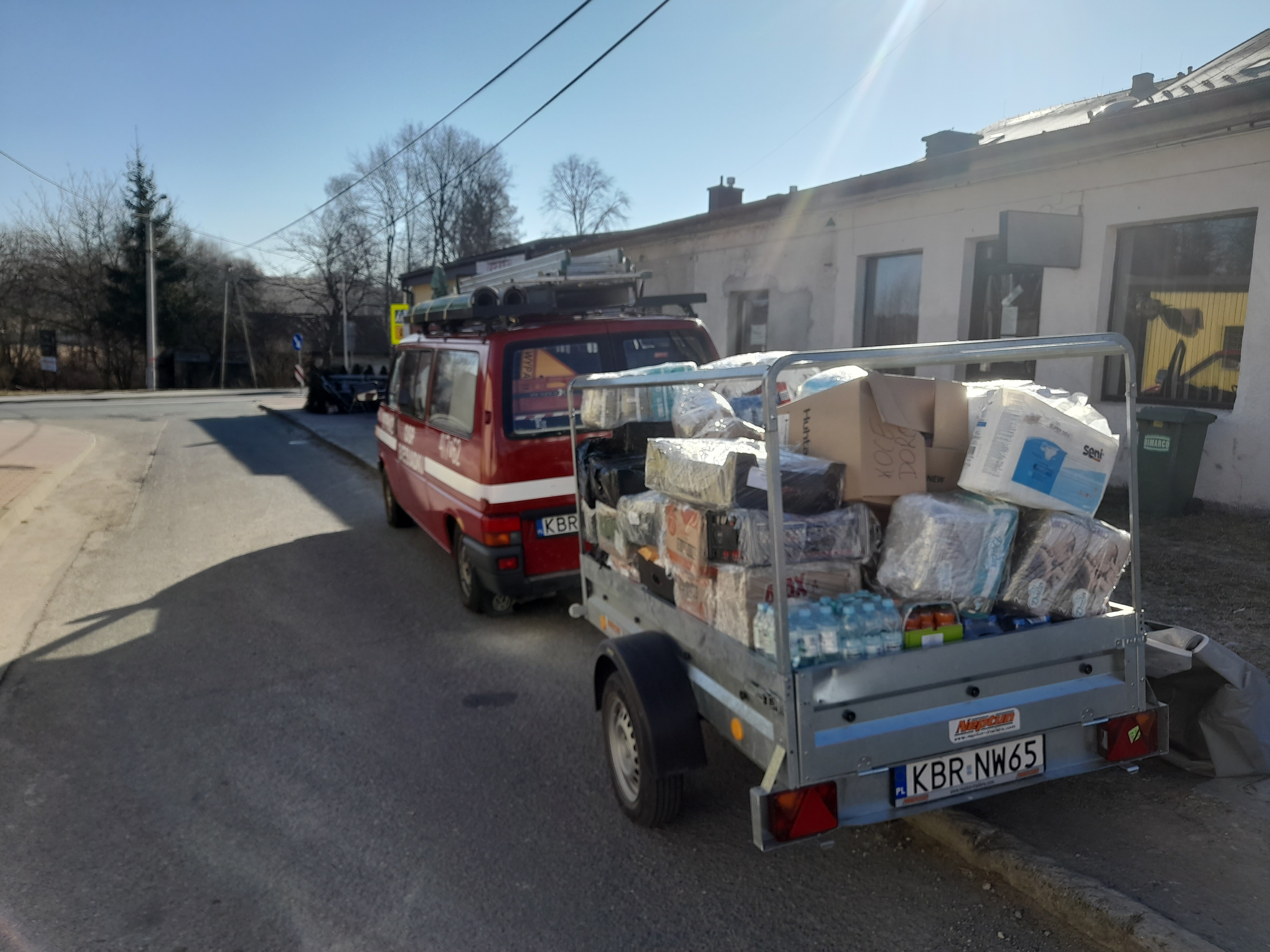 W dalszym ciągu druhowie OSP wspierają działania Powiatowego Magazynu Pomocy dostarczając niezbędne materiały i artykuły dla obywateli Ukrainy.