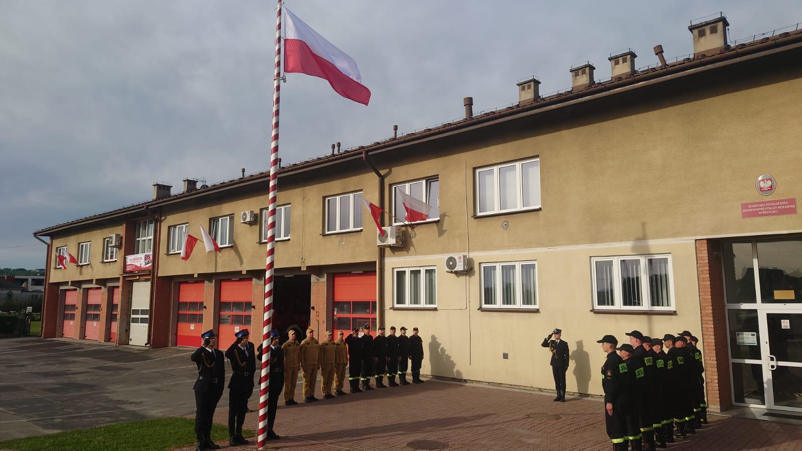 Z okazji Dnia Flagi RP przed budynkiem Komendy Powiatowej PSP w Brzesku dokonano uroczystego podniesienia flagi państwowej.