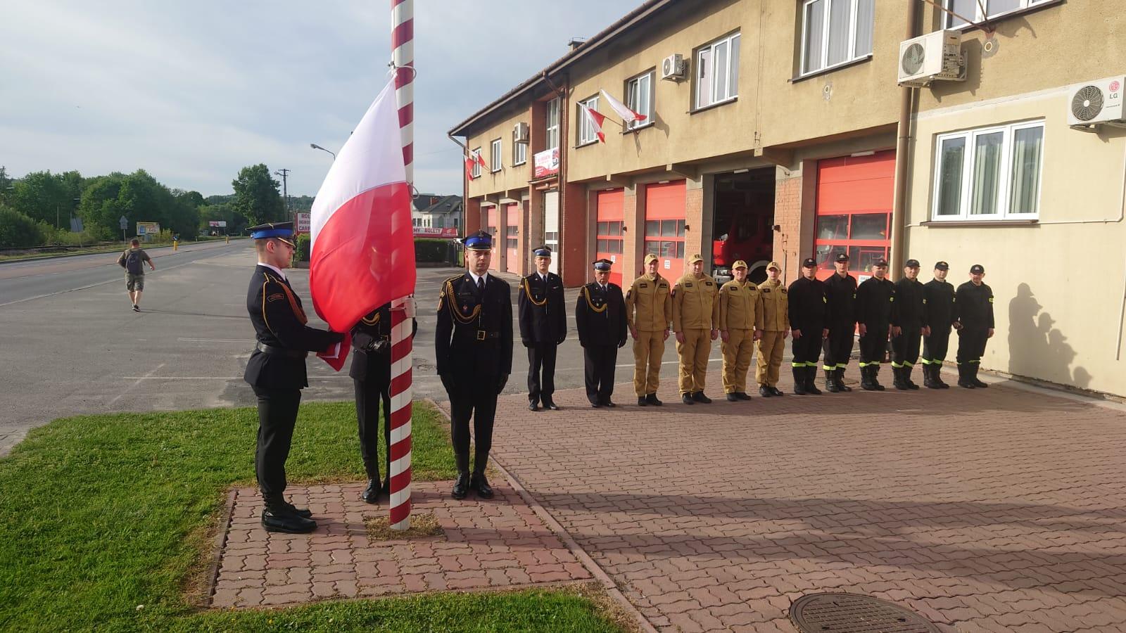 Podniesienia flagi państwowej dokonał poczet flagowy w trzyosobowym składzie zgodnie z ceremoniałem pożarniczym. Uroczystość odbyła się przy dźwiękach hymnu państwowego.