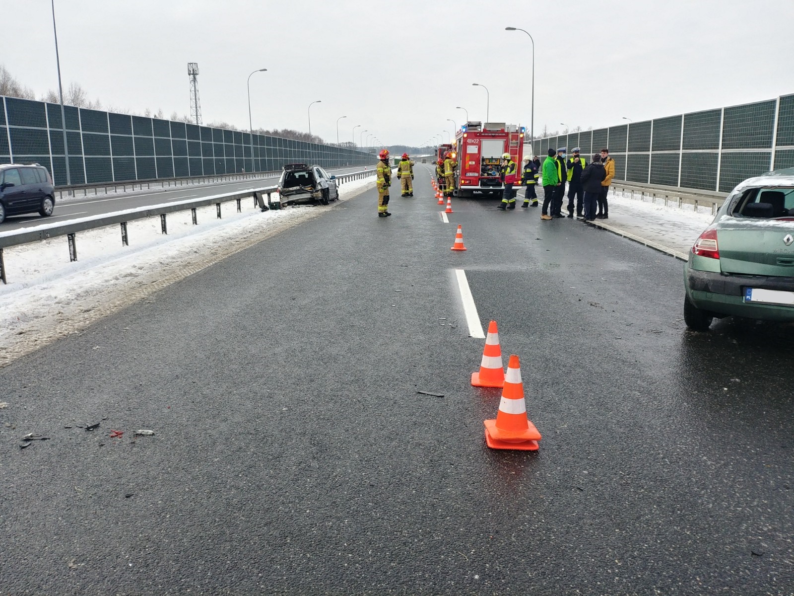 Wypadek w dniu 15 stycznia 2021 r. w miejscowości Mokrzyska, na autostradzie A4 - pas w kierunku Krakowa.
