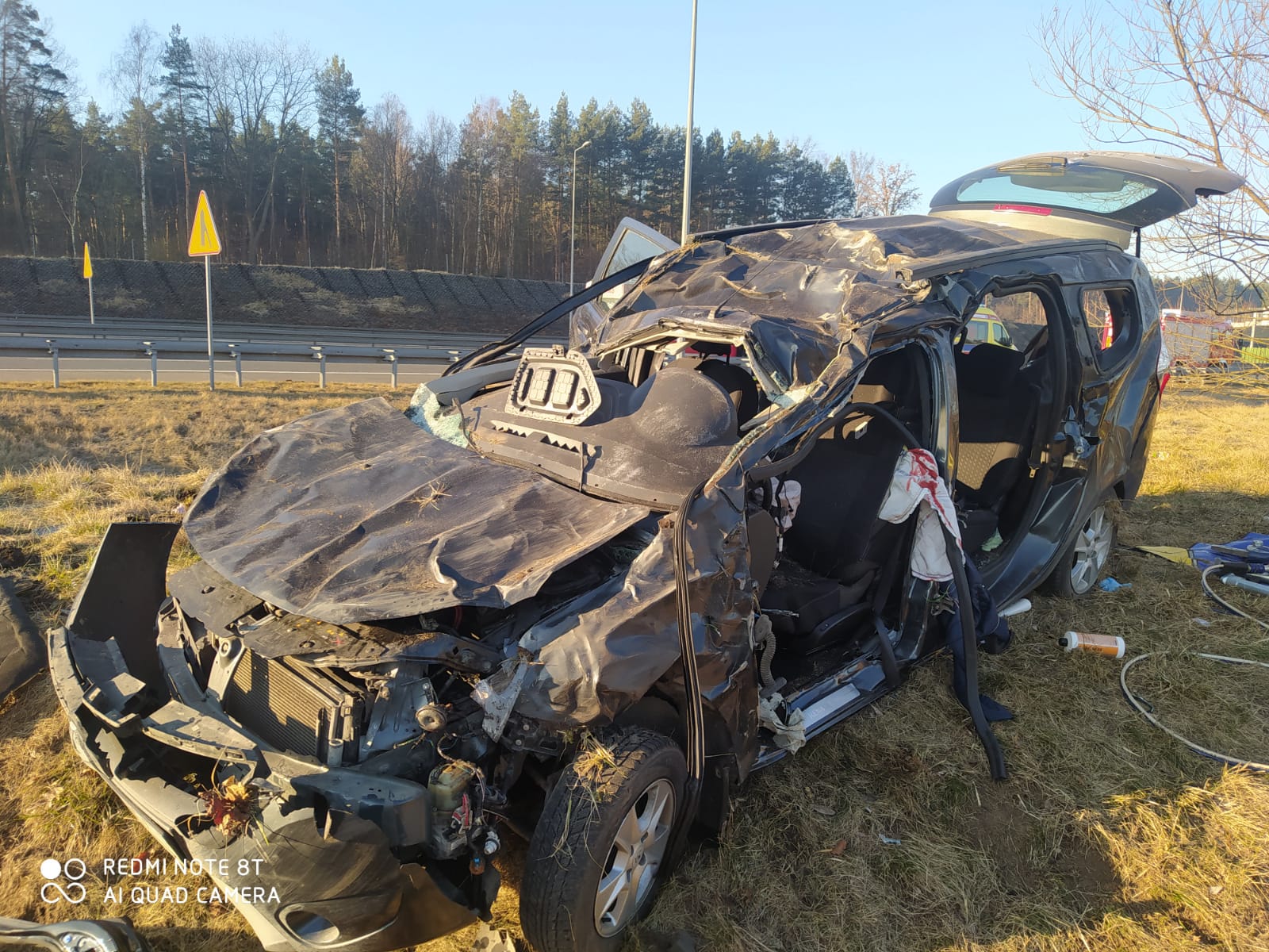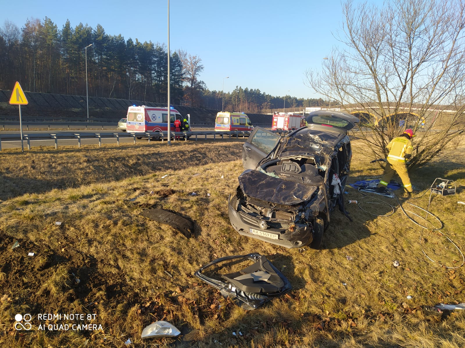 W chwili przybycia zastępów na miejsce zdarzenia w pojeździe zakleszczona była jedna osoba a do jej uwolnienia konieczne było użycie narzędzi hydraulicznych.