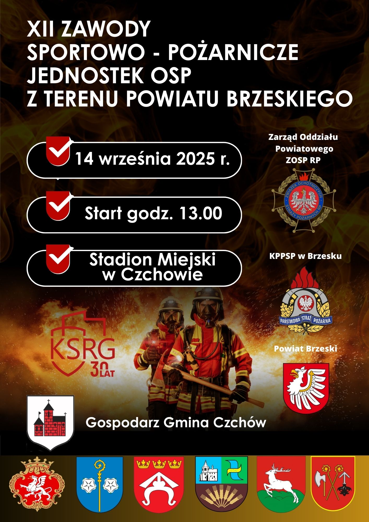 Serdecznie zapraszamy mieszkańców Powiatu oraz wszystkich sympatyków pożarnictwa na XII Powiatowe Zawody Sportowo-Pożarnicze Jednostek OSP, które odbędą się w niedzielę, 14 września 2025 r. na stadionie miejskim w Czchowie.