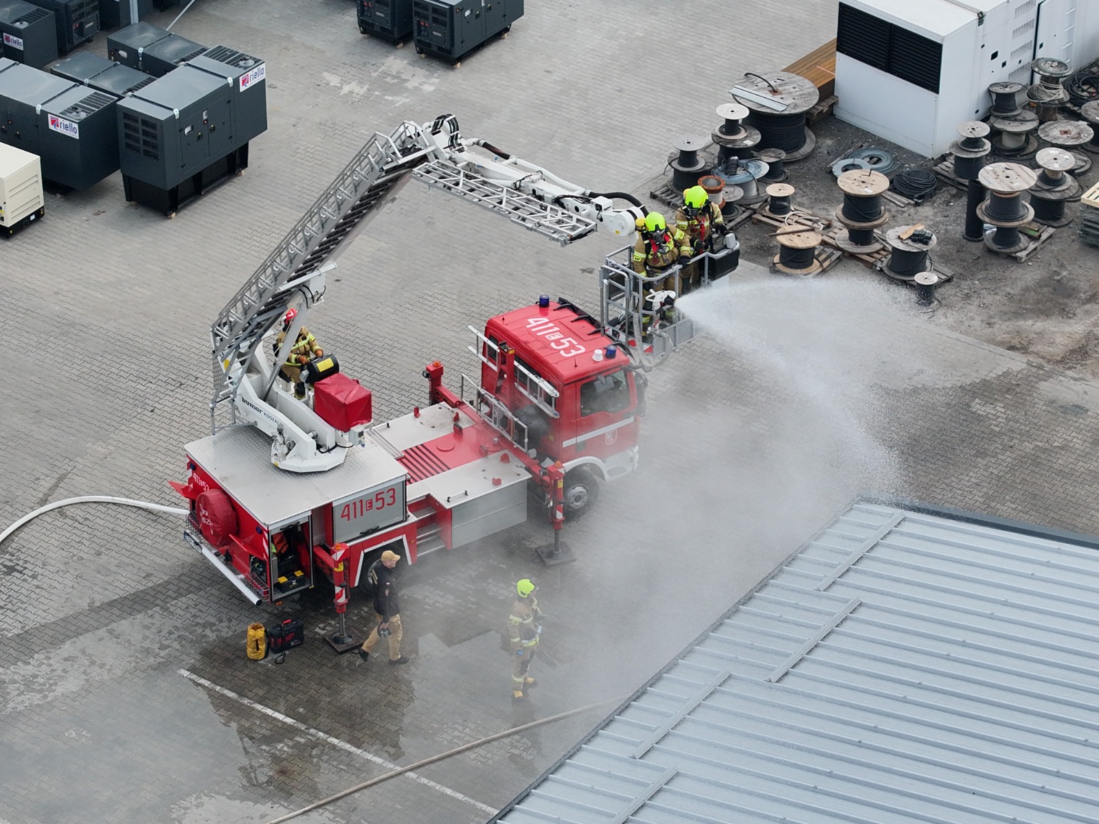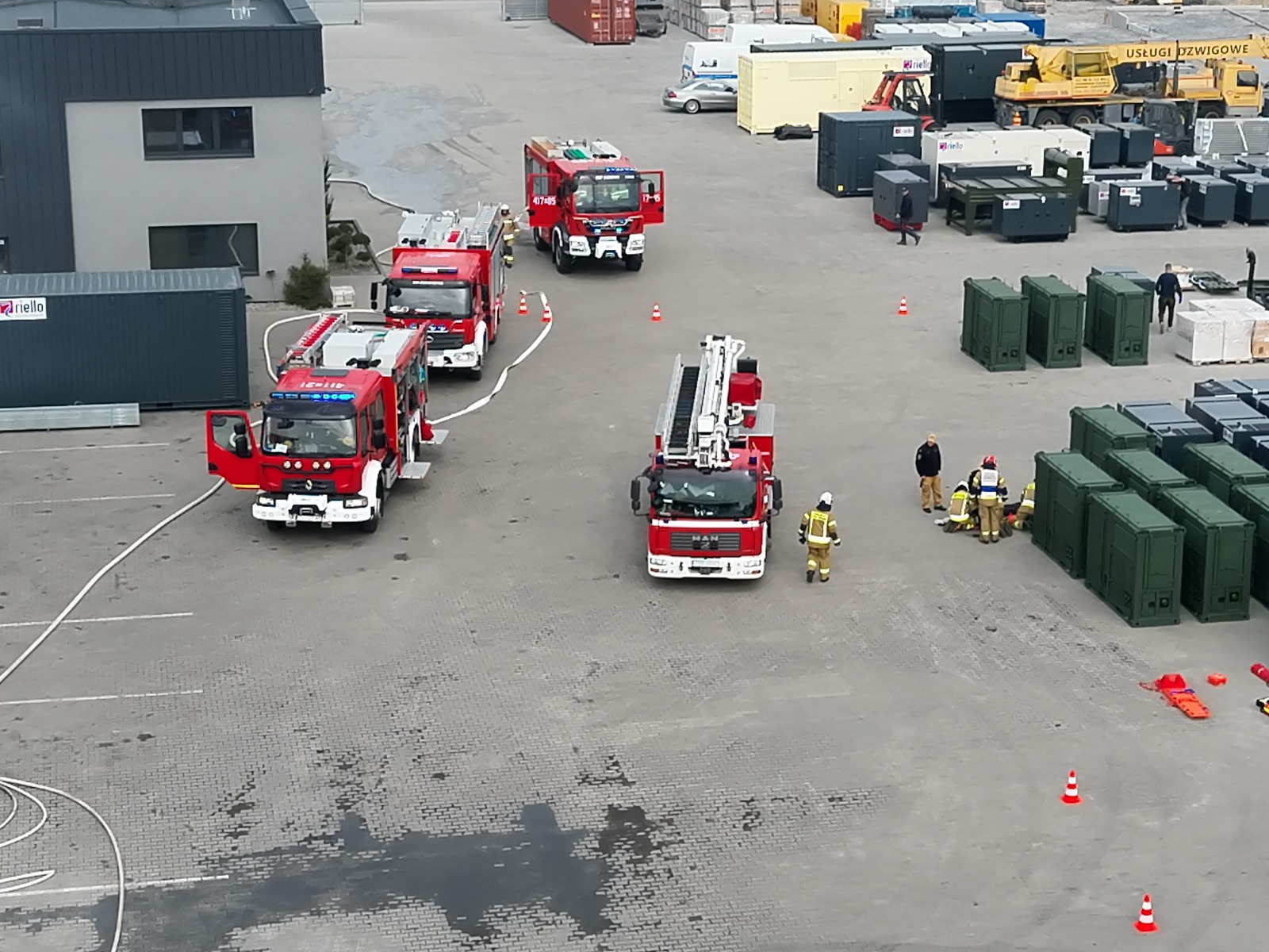 W dniach 14-16 kwietnia 2026 roku w zakładzie Riello Delta Power produkujący agregaty prądotwórcze miały miejsce ćwiczenia obiektowe, podczas których Jednostki Ochrony Przeciwpożarowej z ternu gminy Jeżów doskonaliły swoje umiejętności na podstawie ułożonego scenariusza: „W miejscowości Jeżów, na terenie zakładu Riello Delta Power