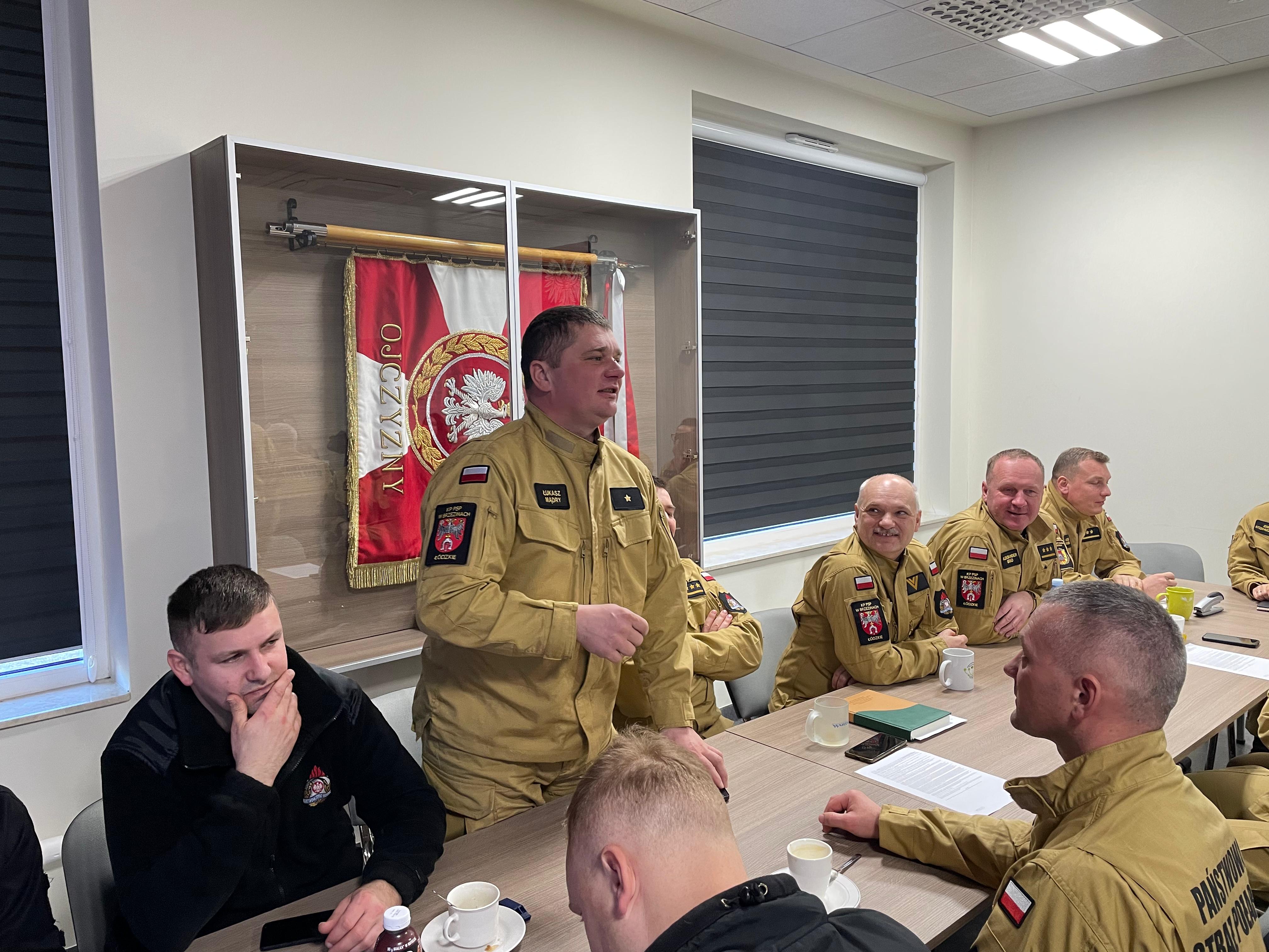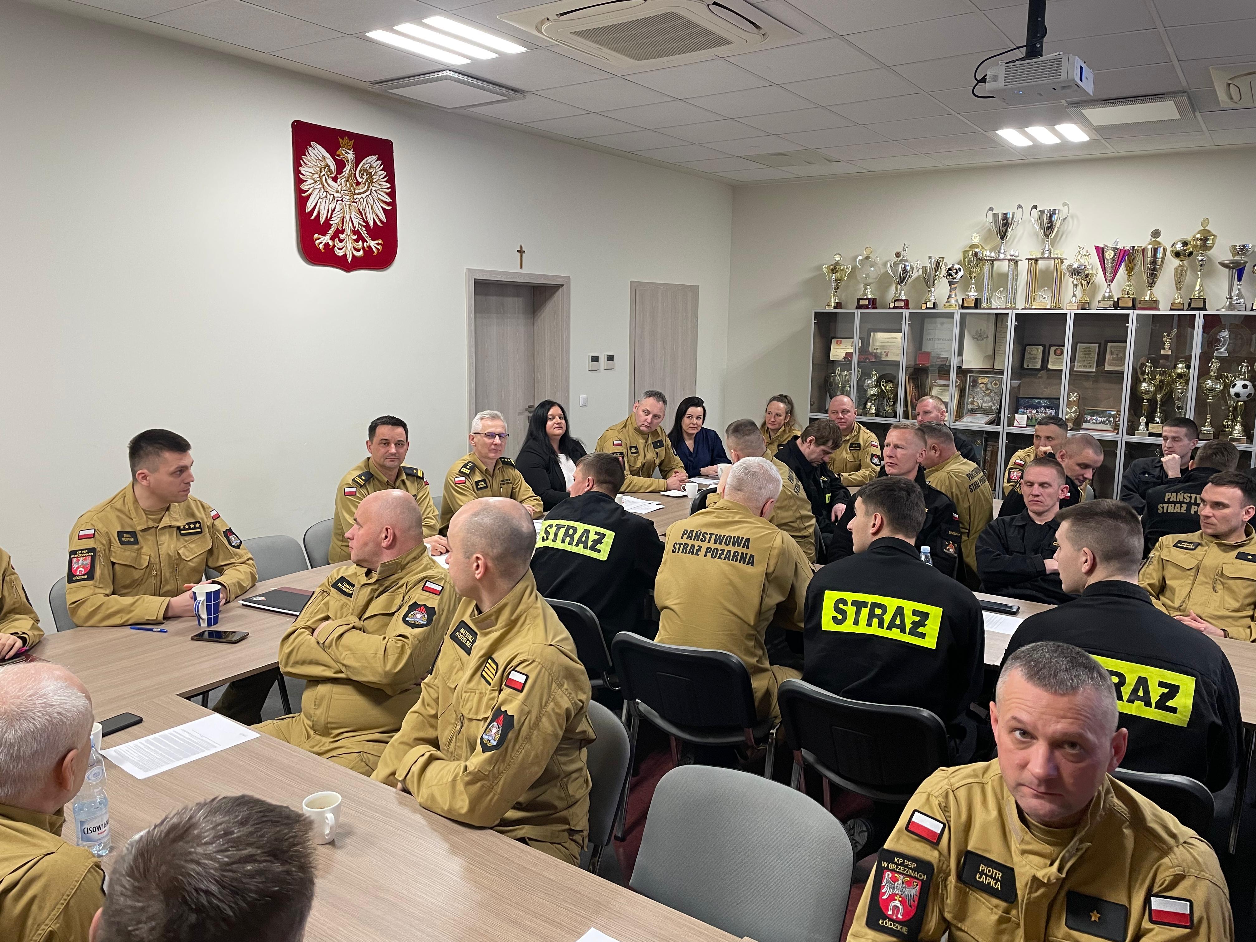 11 lutego 2025 roku w siedzibie Komendy Powiatowej Państwowej Straży Pożarnej w Brzezinach odbyła się odprawa służbowa, w której uczestniczył Komendant Powiatowy Państwowej Straży Pożarnej w Brzezinach st. bryg. Mariusz Kaczmarski, Zastępca Komendanta Powiatowego Państwowej Straży Pożarnej w Brzezinach mł. bryg. Jakub Brzózka oraz funkcjonariusze i pracownicy cywilni komendy.