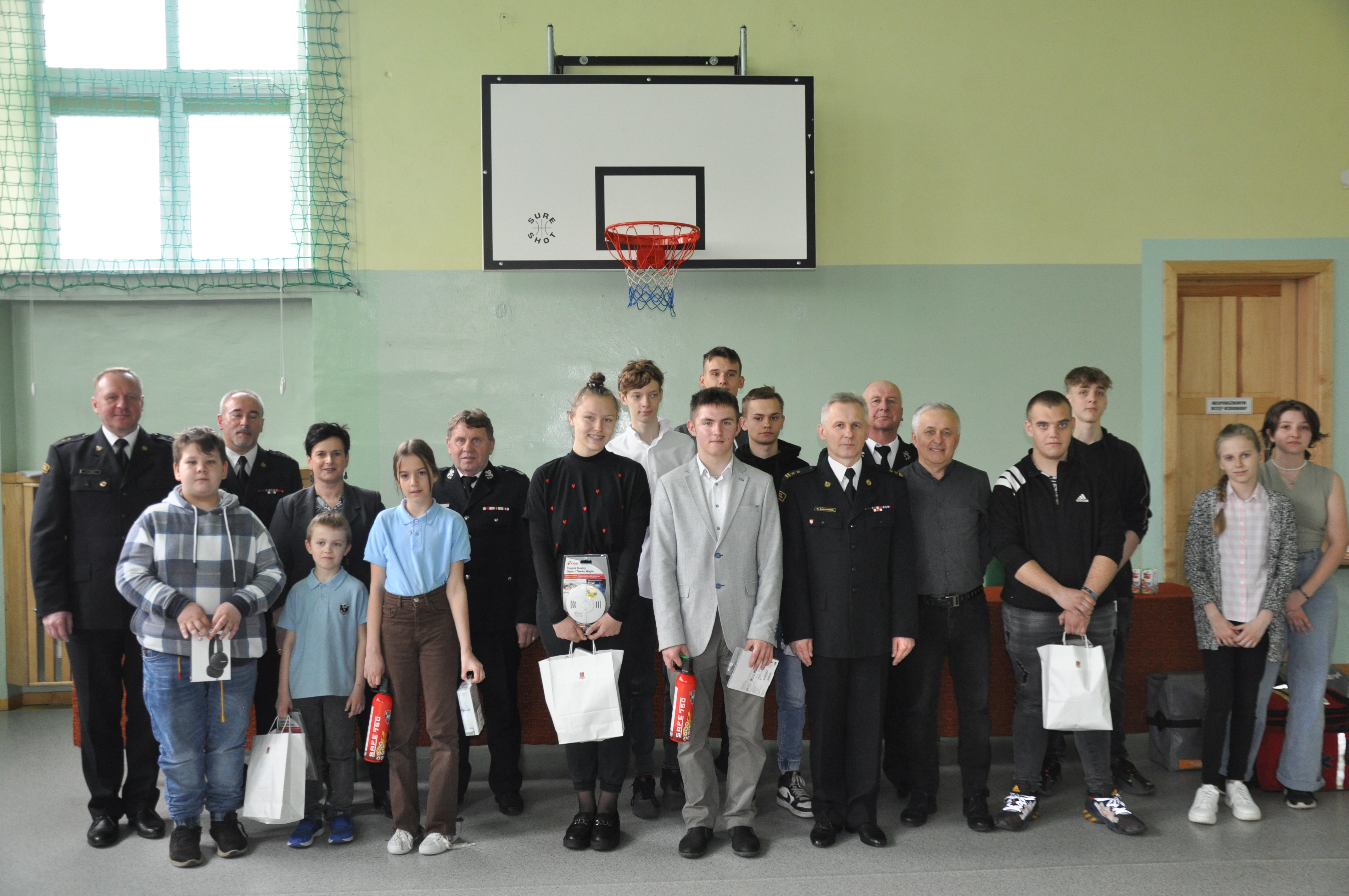 Wszyscy uczestnicy konkursu otrzymali drobne upominki, natomiast uczniowie, którzy zajęli pierwsze trzy miejsca w każdej grupie wiekowej otrzymali nagrody z rąk Pani Renaty Kobiera – Starosty Brzezińskiego, st. bryg. Dariusza Guzka – Komendanta Powiatowego PSP w Brzezinach oraz dh. Leszka Jarząba – Prezesa Powiatowego ZOSP RP w Brzezinach.