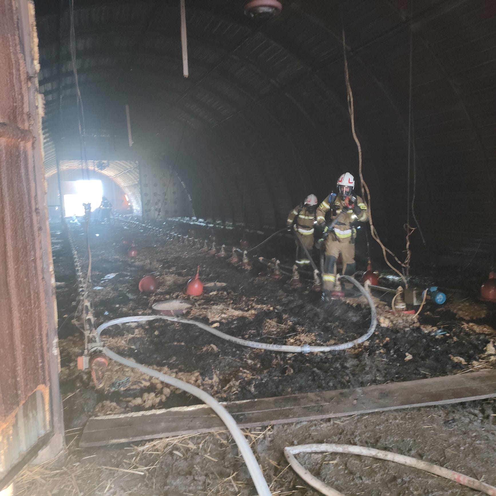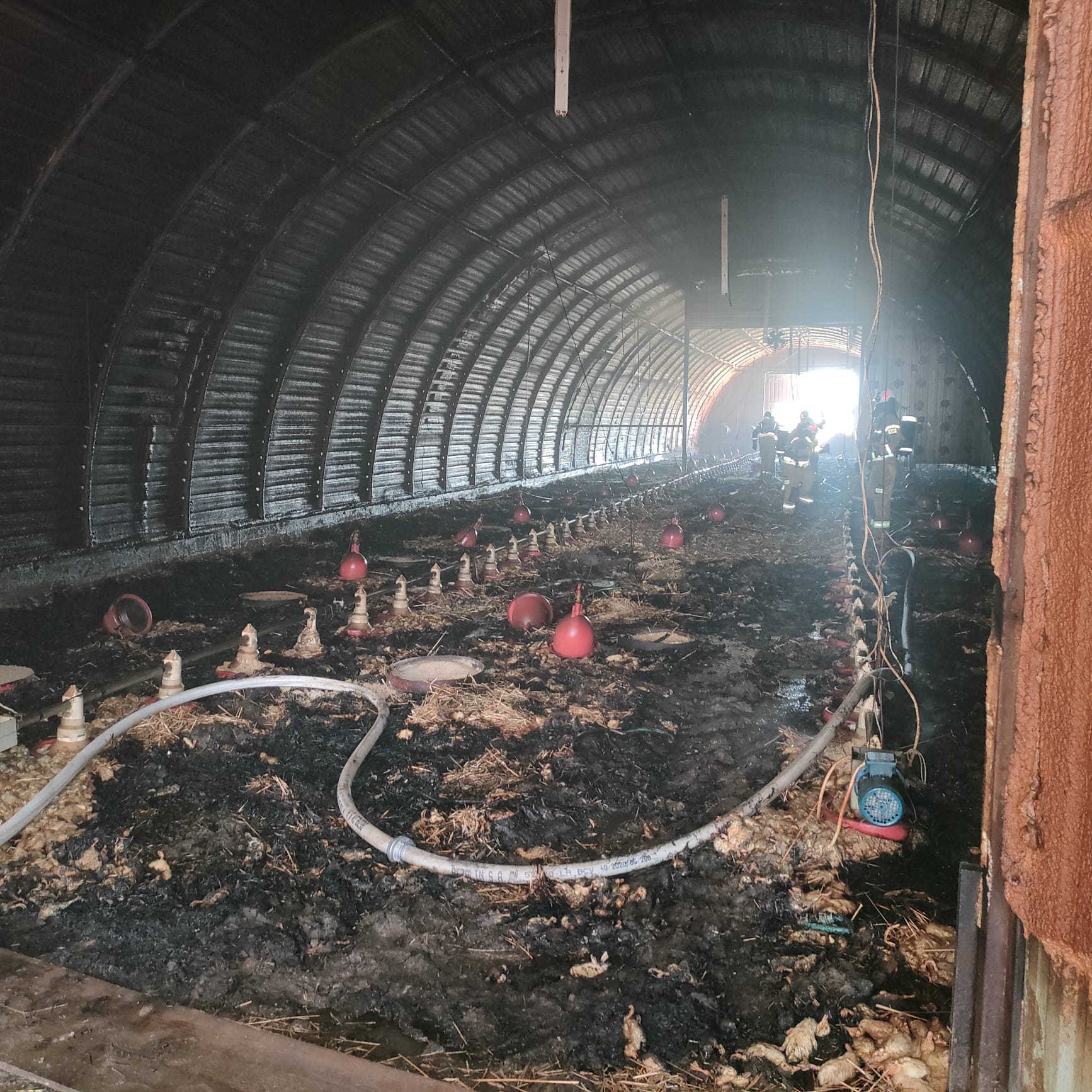 Po przybyciu na miejsce Kierujący Działaniem Ratowniczym (KDR) stwierdził pożar jednego z trzech kurników. Do zdarzenia doszło najprawdopodobniej w wyniku awarii nagrzewnicy znajdującej się wewnątrz obiektu. Z informacji uzyskanych od właściciela wynikało, że w płonącym kurniku znajduje się około 13 tysięcy piskląt kaczek. Nie stwierdzono osób poszkodowanych, a energia elektryczna w całym obiekcie została odłączona.