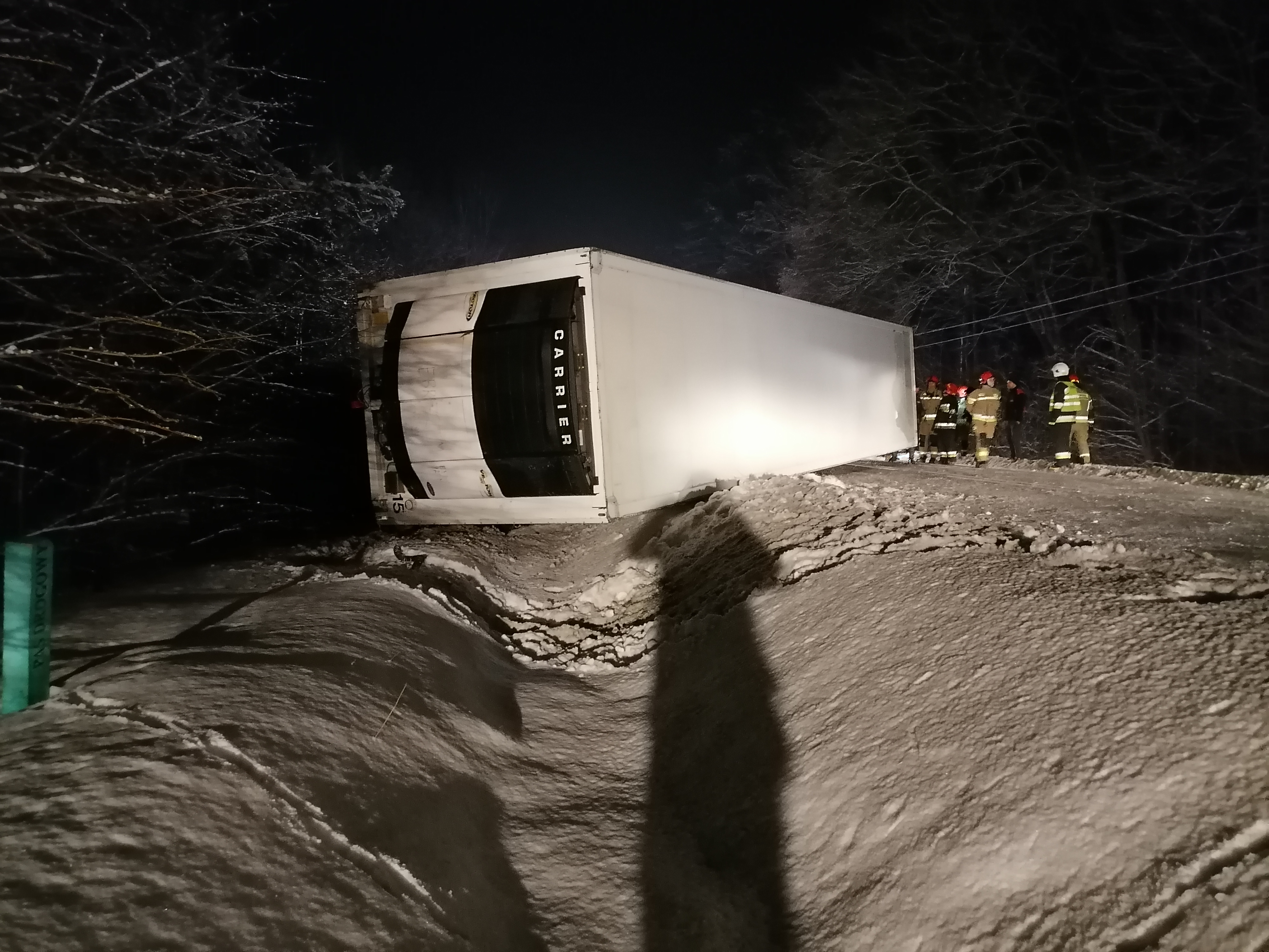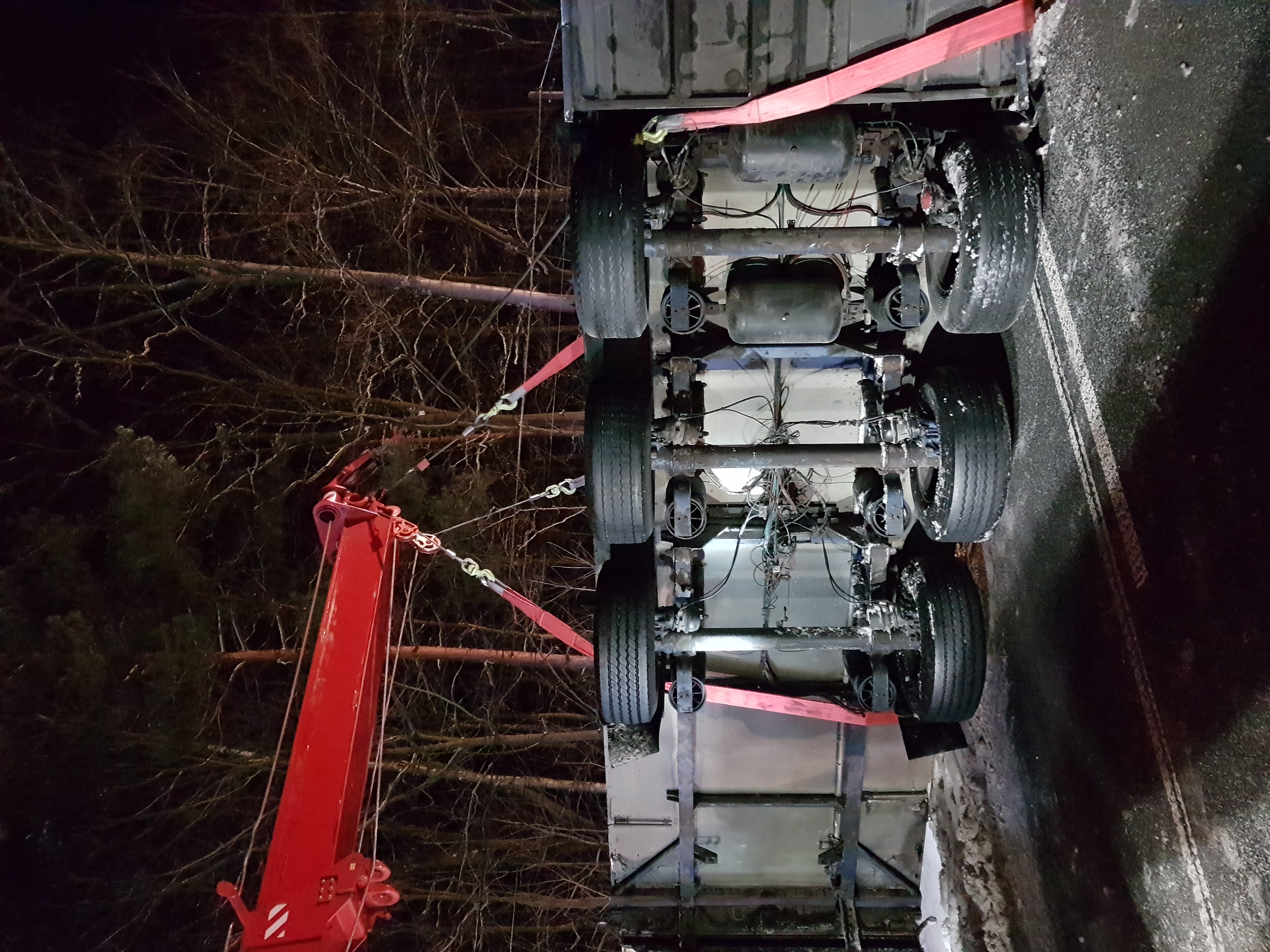 18 lutego, około godziny 20:36, na drodze wojewódzkiej nr 708, w miejscowości Tadzin, gm. Brzeziny doszło do przewrócenia się samochodu ciężarowego z naczepą. Uszkodzony pojazd całkowicie zablokował drogę. Kierujący nie odniósł widocznych obrażeń. Działania ratownicze prowadzone przez jednostki ochrony przeciwpożarowej polegały m.in. na podniesieniu uszkodzonego pojazdu oraz przepompowaniu paliwa z uszkodzonego zbiornika w ciągniku siodłowym. W działaniach udział brało 9 zastępów jednostek ochrony przeciwpożarowej, w tym 4 wchodzące w skład Specjalistycznej Grupy Ratownictwa Technicznego "Łódź".