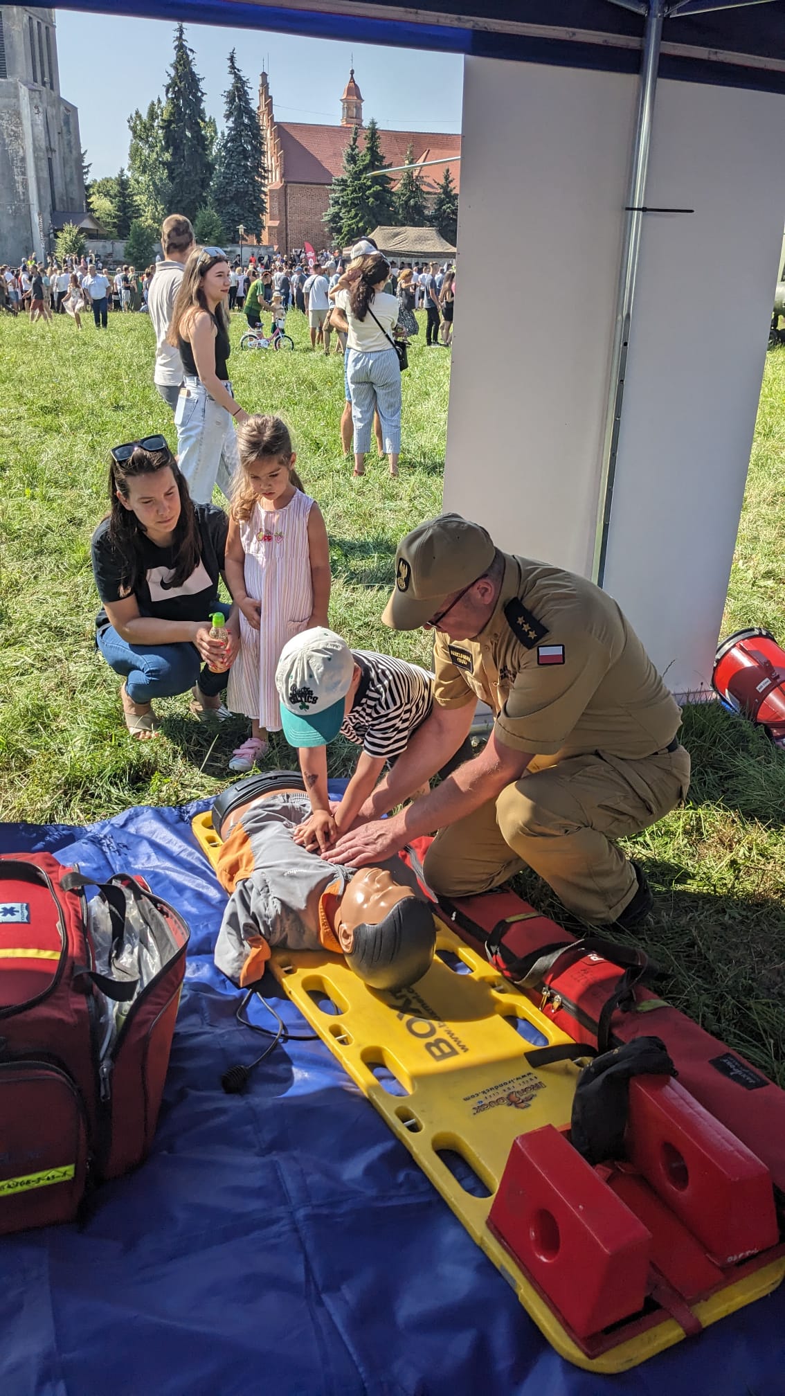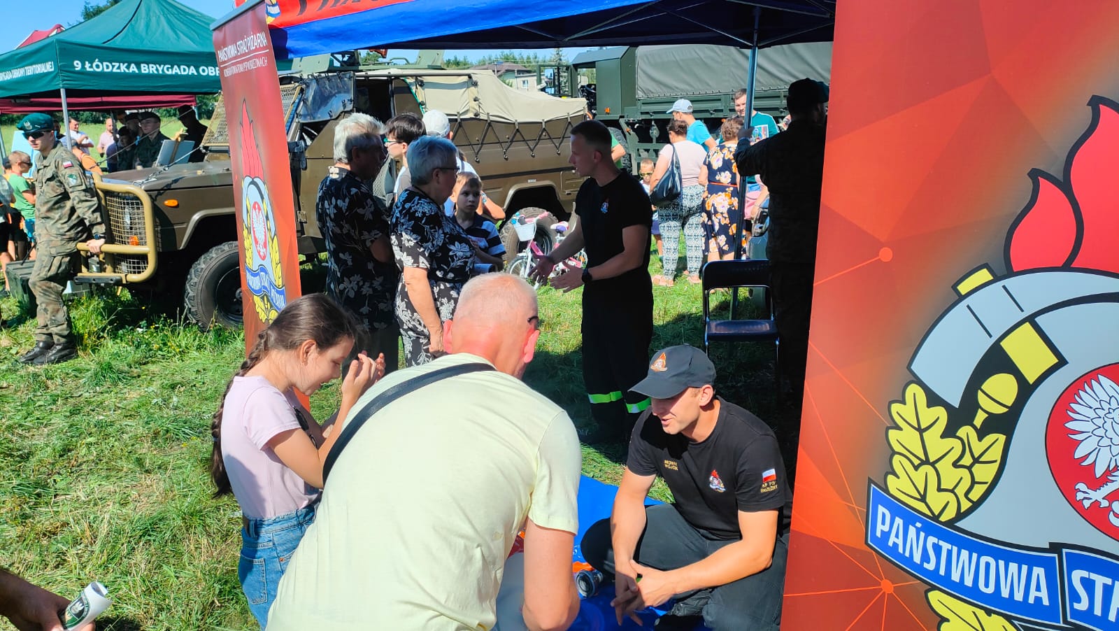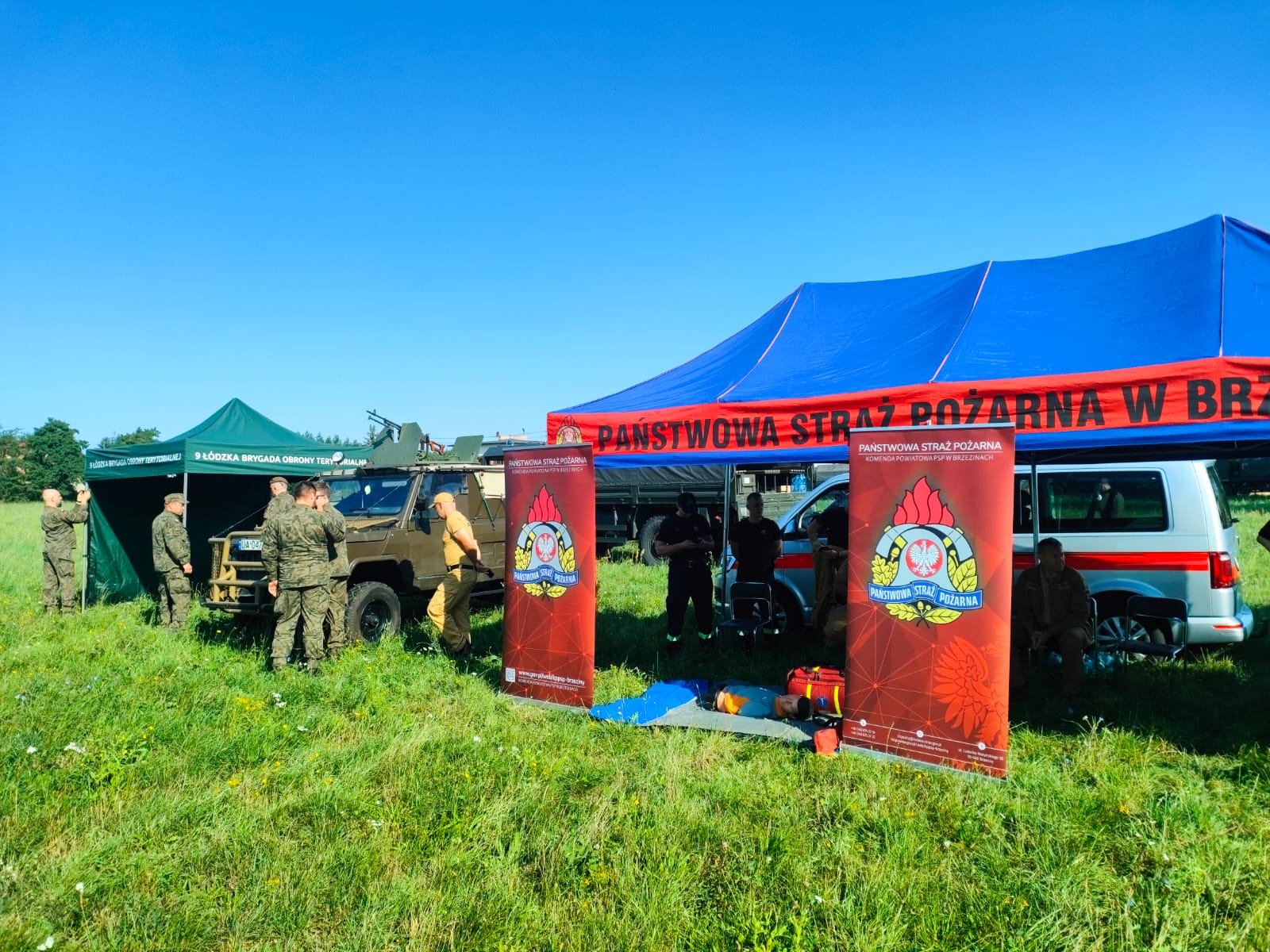 W dniu 9 sierpnia 2025 roku o godzinie 10:00 na terenie parkingu przy Parafii pw. Podwyższenia Świętego Krzyża w Brzezinach odbyła się uroczysta przysięga wojskowa żołnierzy Dobrowolnej Zasadniczej Służby Wojskowej. Funkcjonariusze Komendy Powiatowej PSP w Brzezinach wraz z druhami z OSP Brzeziny wzięli udział w organizowanej uroczystości w formie wystawienia własnego stoiska, przy którym można było zapoznać się z zasadami udzielania kwalifikowanej pierwszej pomocy, porozmawiać o służbie w PSP oraz o szeroko pojętym bezpieczeństwie.