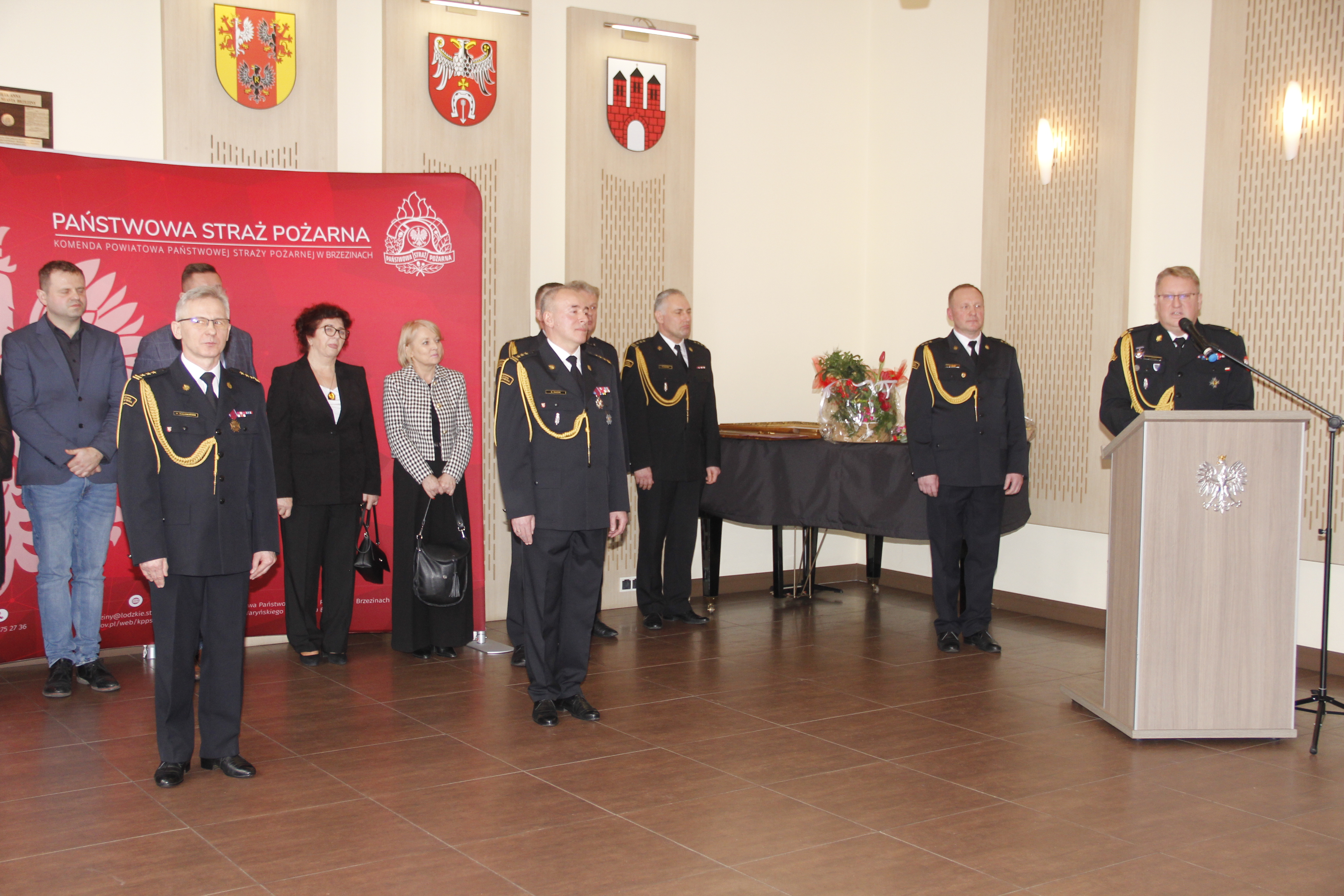 W dniu 23 lutego 2024 r. w Sali konferencyjnej Urzędu Miasta w Brzezinach odbyła się uroczystość zakończenia służby i zdania obowiązków Komendanta Powiatowego Państwowej Straży Pożarnej