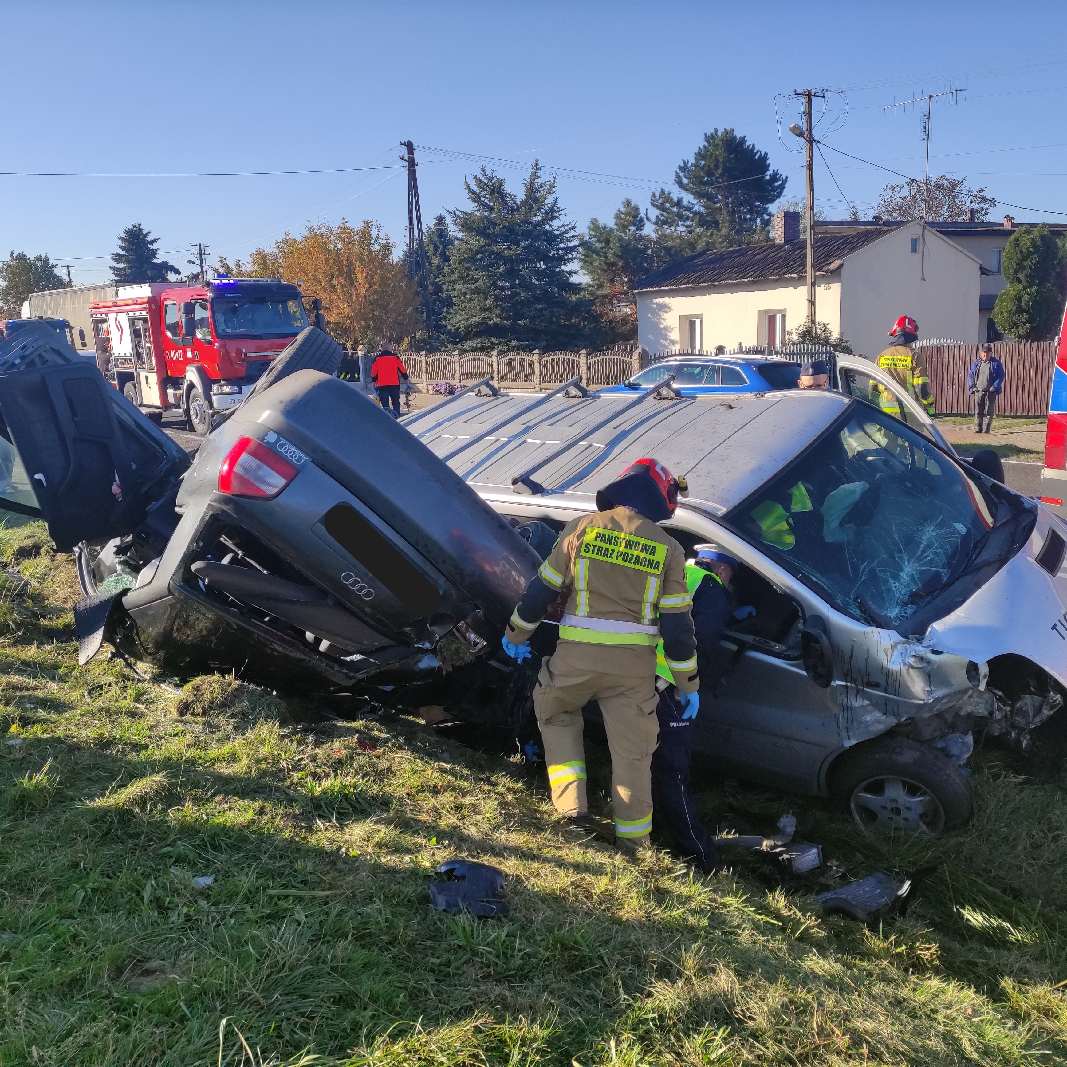 Działania ratownicze prowadzone przez przybyłych na miejsce strażaków polegały m.in. na zabezpieczeniu miejsca zdarzenia, wykonaniu dostępu do osoby poszkodowanej przy pomocy narzędzi hydraulicznych, wydobyciu osoby poszkodowanej, udzieleniu kwalifikowanej pierwszej pomocy osobom poszkodowanym, sorpcji płynów eksploatacyjnych oraz uprzątnięciu z jezdni pozostałości powypadkowych.