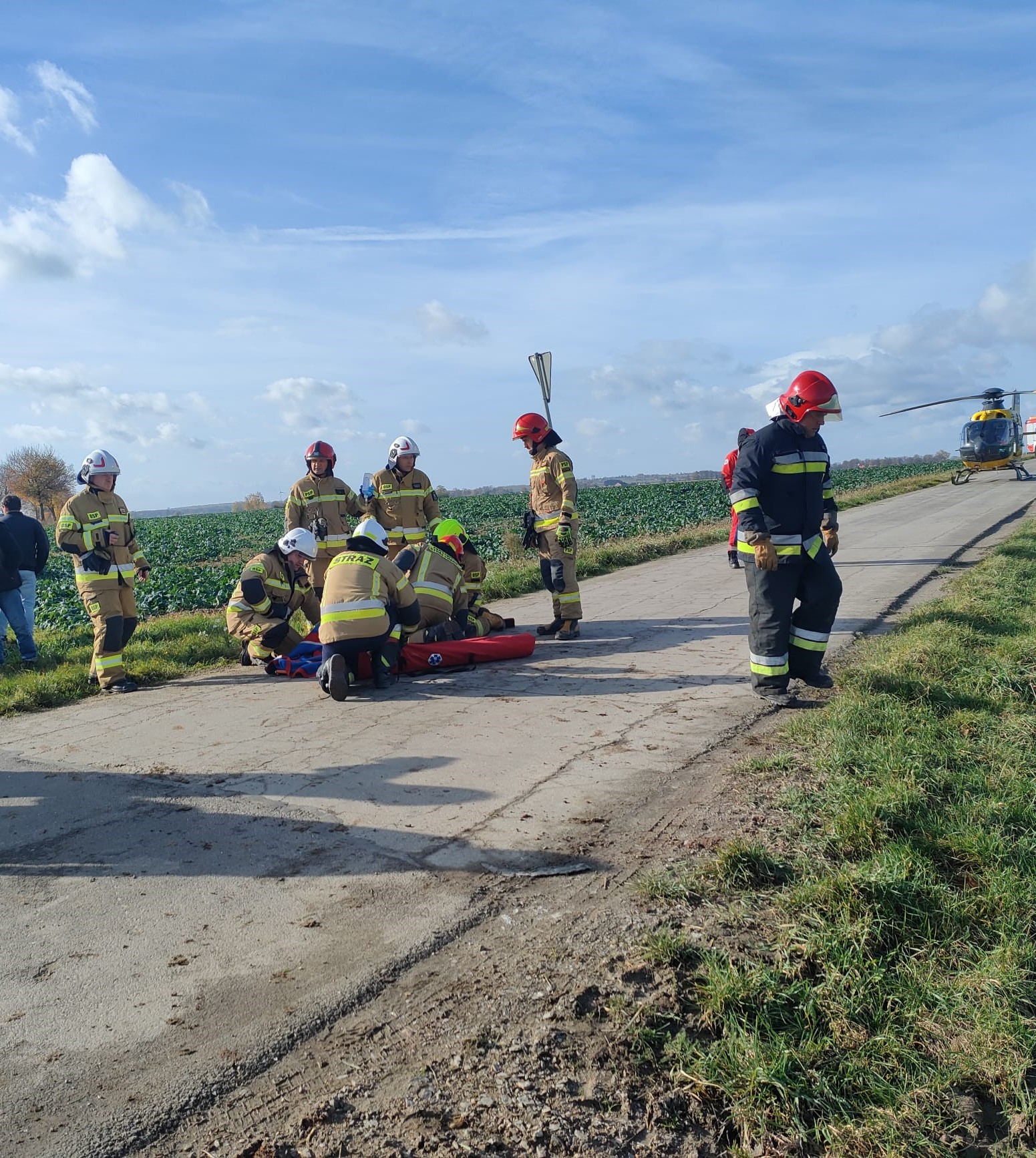 Działania ratownicze prowadzone przez przybyłych na miejsce strażaków polegały m.in. na zabezpieczeniu miejsca zdarzenia, wykonaniu dostępu do osoby zakleszczonej przy użyciu hydraulicznych narzędzi ratowniczych, udzieleniu kwalifikowanej pierwszej pomocy osobom poszkodowanym, wyznaczeniu i zabezpieczeniu lądowiska dla śmigłowca Lotniczego Pogotowia Ratunkowego, odłączeniu klem akumulatorów w uszkodzonych pojazdach.
