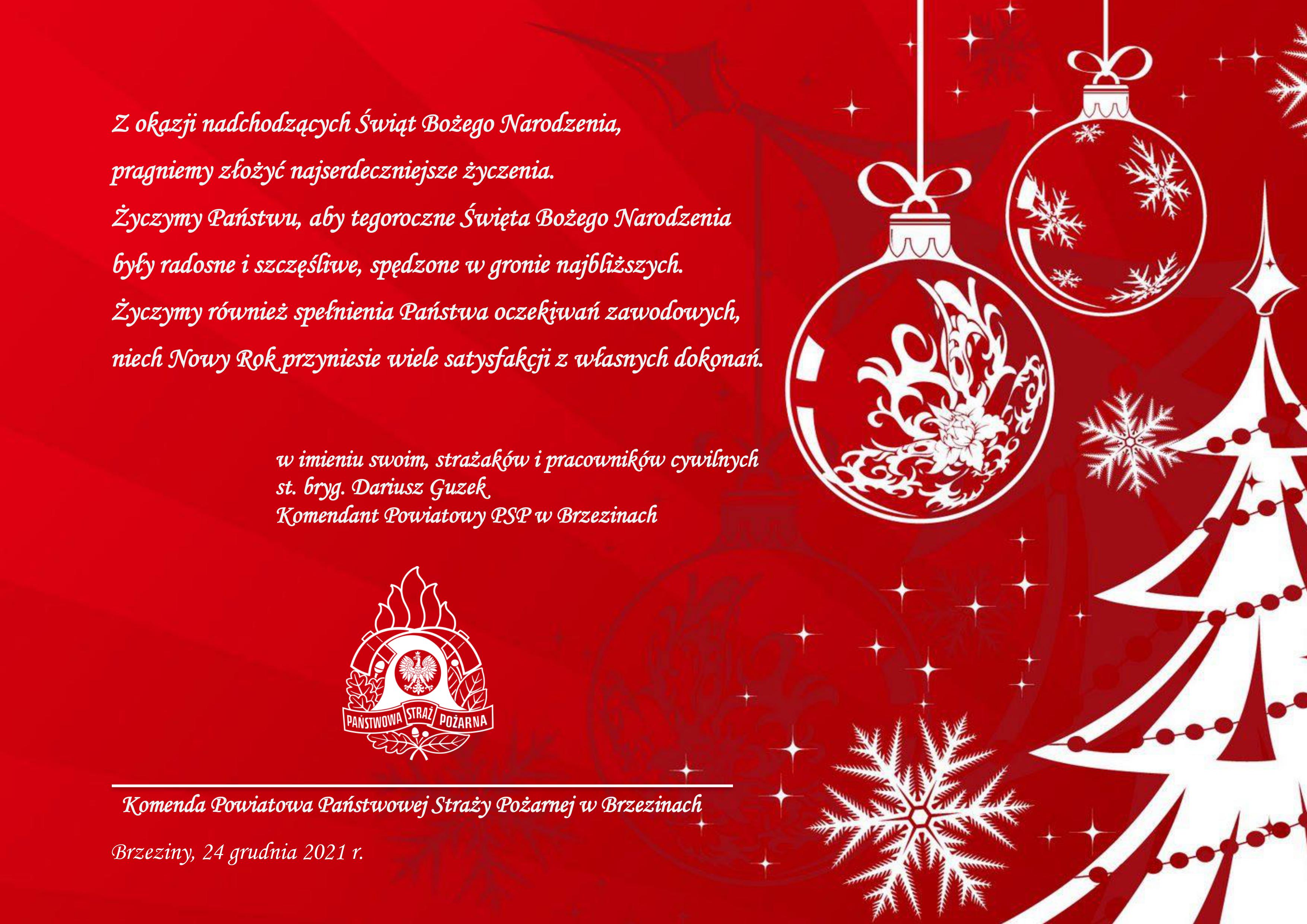 Życzenia Komendanta Powiatowego PSP w Brzezinach