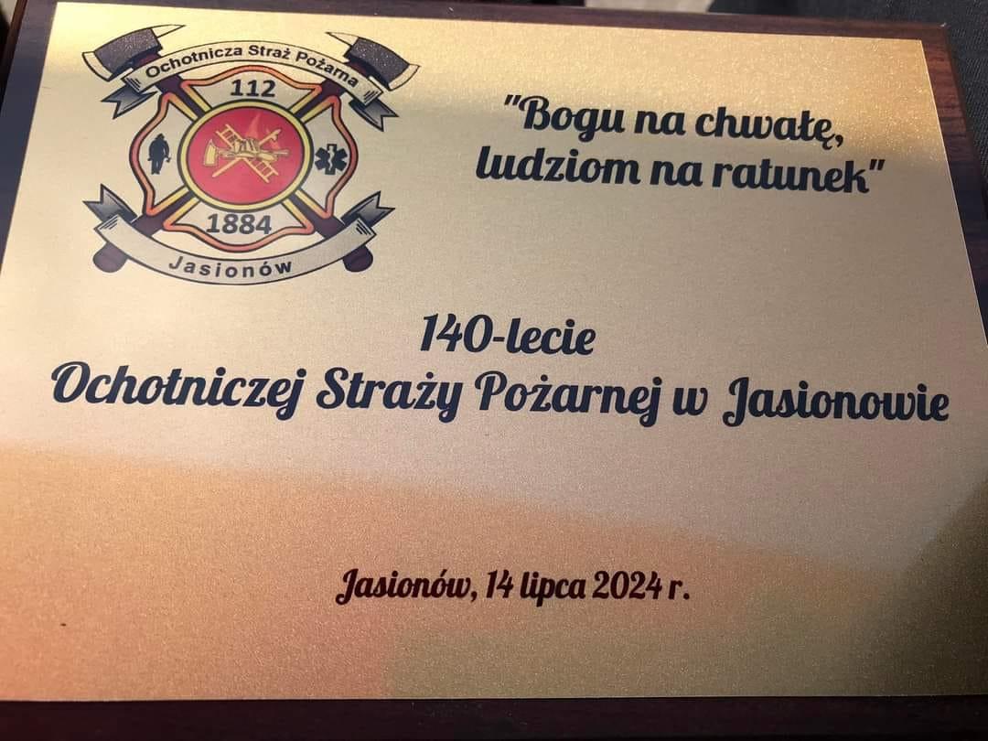 14 lipca 2024 r. miały miejsce obchody 140 - lecia powołania Ochotniczej Straży Pożarnej w Jasionowie. Uroczystość rozpoczęła okolicznościowa Msza Św., po której nastąpił przemarsz strażaków i zaproszonych gości w asyście orkiestry dętej na plac przed Domem Strażaka.